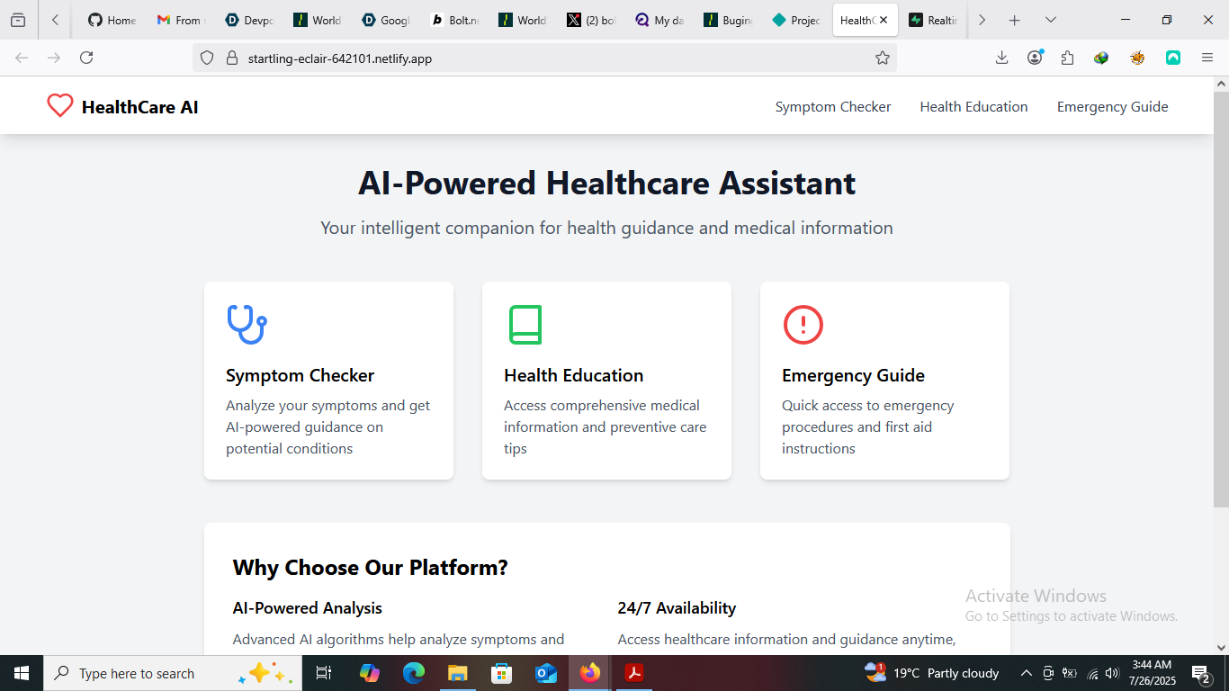 What inspired me: The inspiration behind the Healthcare AI Assistant App came from witnessing firsthand how patients and healthcare providers often struggle with accessing timely and accurate medical information. I wanted to create a tool that could help bridge this gap by providing instant assistance, reliable health advice, and support for managing everyday health concerns. The goal was to empower users to make informed decisions about their health and improve communication between patients and healthcare professionals.