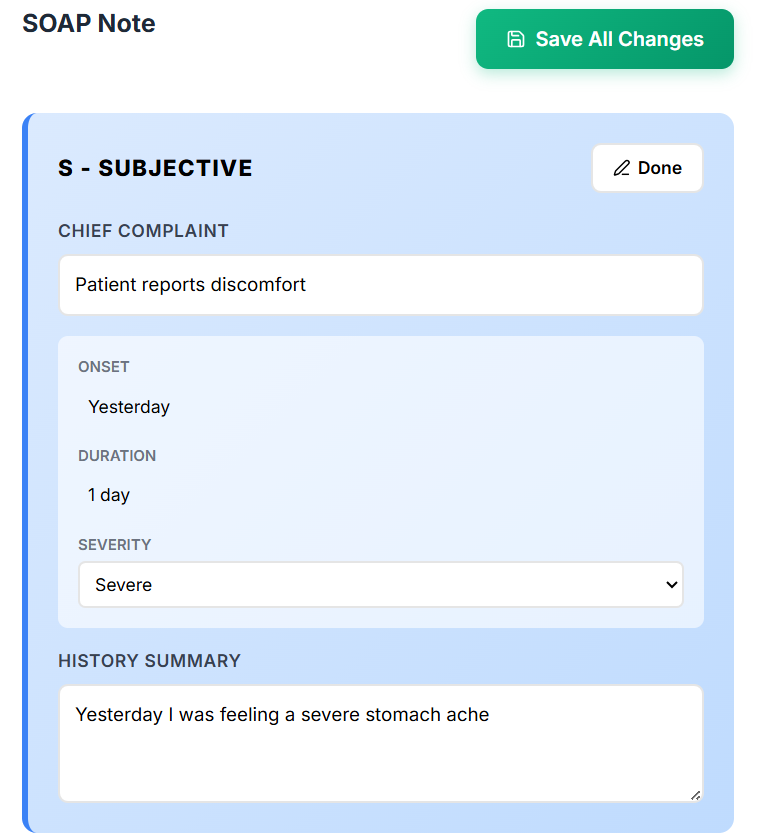 Doctors often spend more time documenting patient interactions than actually interacting with patients. Clinical notes are usually written after consultations, leading to delays, missing details, and cognitive overload for clinicians.
