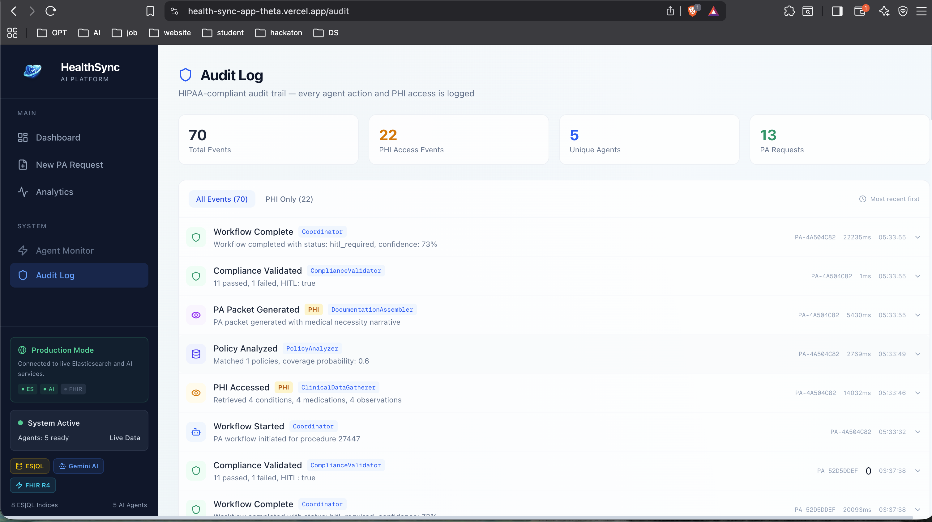And honestly - getting 5 agents to coordinate across 8 indices and produce a coherent, explainable PA decision in under 30 seconds in demo mode felt like the thing finally working the way I imagined it at the start.