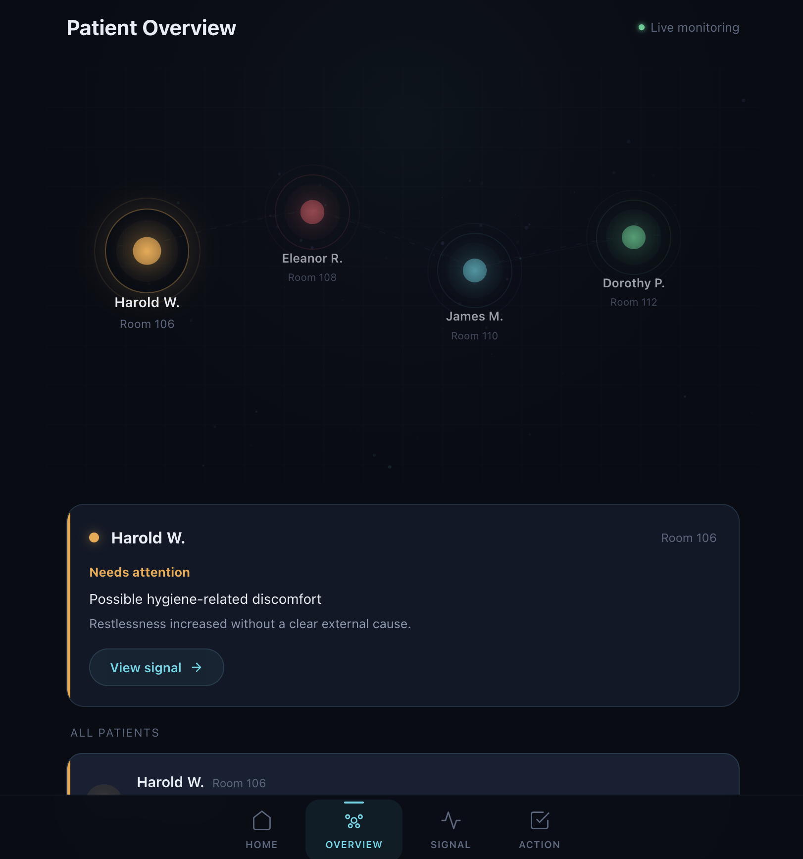 We would also look at other surfaces beyond a single app screen, like bedside displays or ambient care signals.