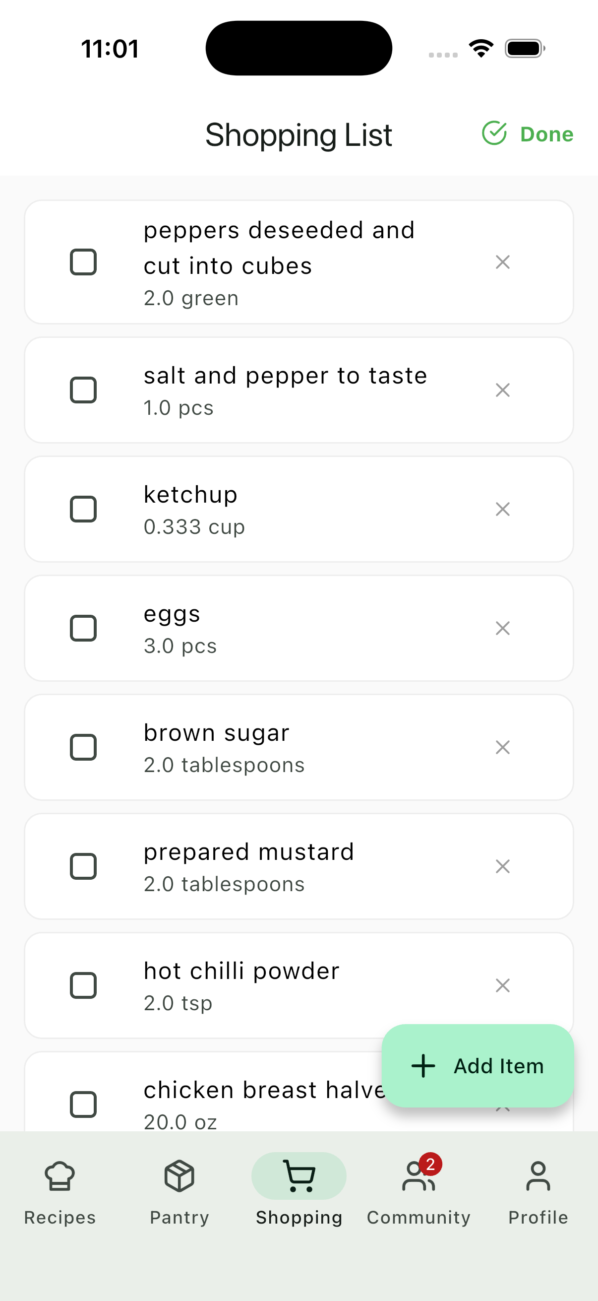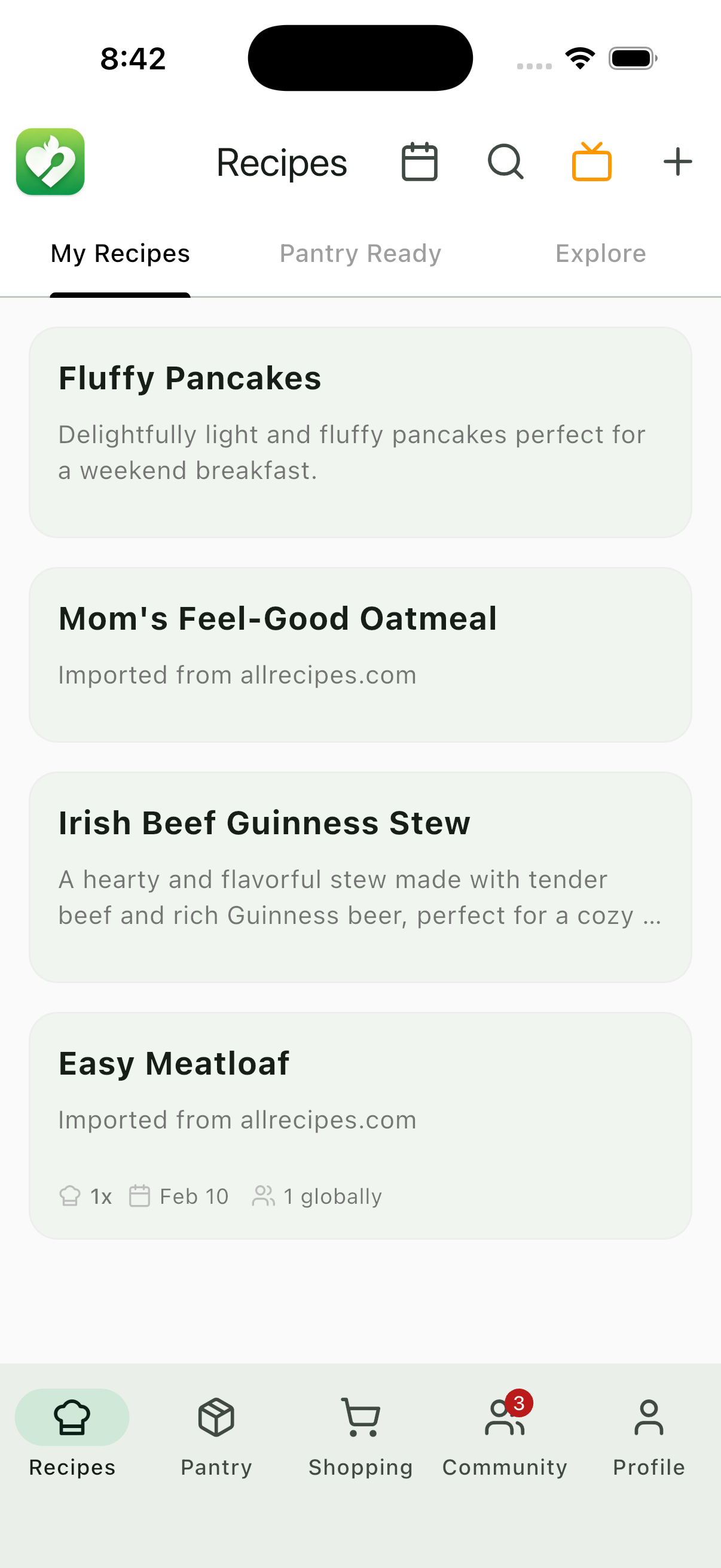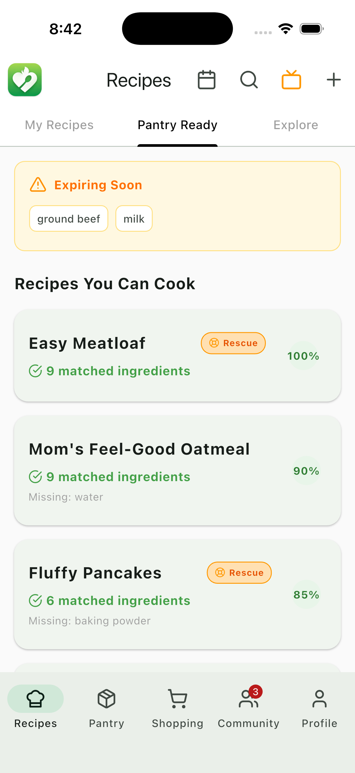 The app combines a responsive mobile interface with backend services that parse recipes, normalize ingredient data, and manage pantry intelligence. AI-powered extraction converts recipe content into structured grocery items, while a recommendation engine suggests meals based on available ingredients. We layered community features on top of this foundation, enabling messaging. RevenueCat powers subscriptions that unlock advanced features and community perks. Throughout development, we focused on rapid iteration and user feedback to keep the experience intuitive and human.