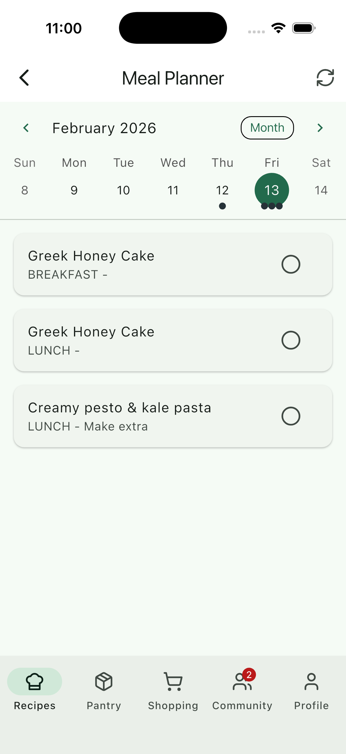 Finally, the scope of the vision was ambitious. Combining recipes, inventory, meal planning, costing, and community into a cohesive MVP required disciplined prioritization.