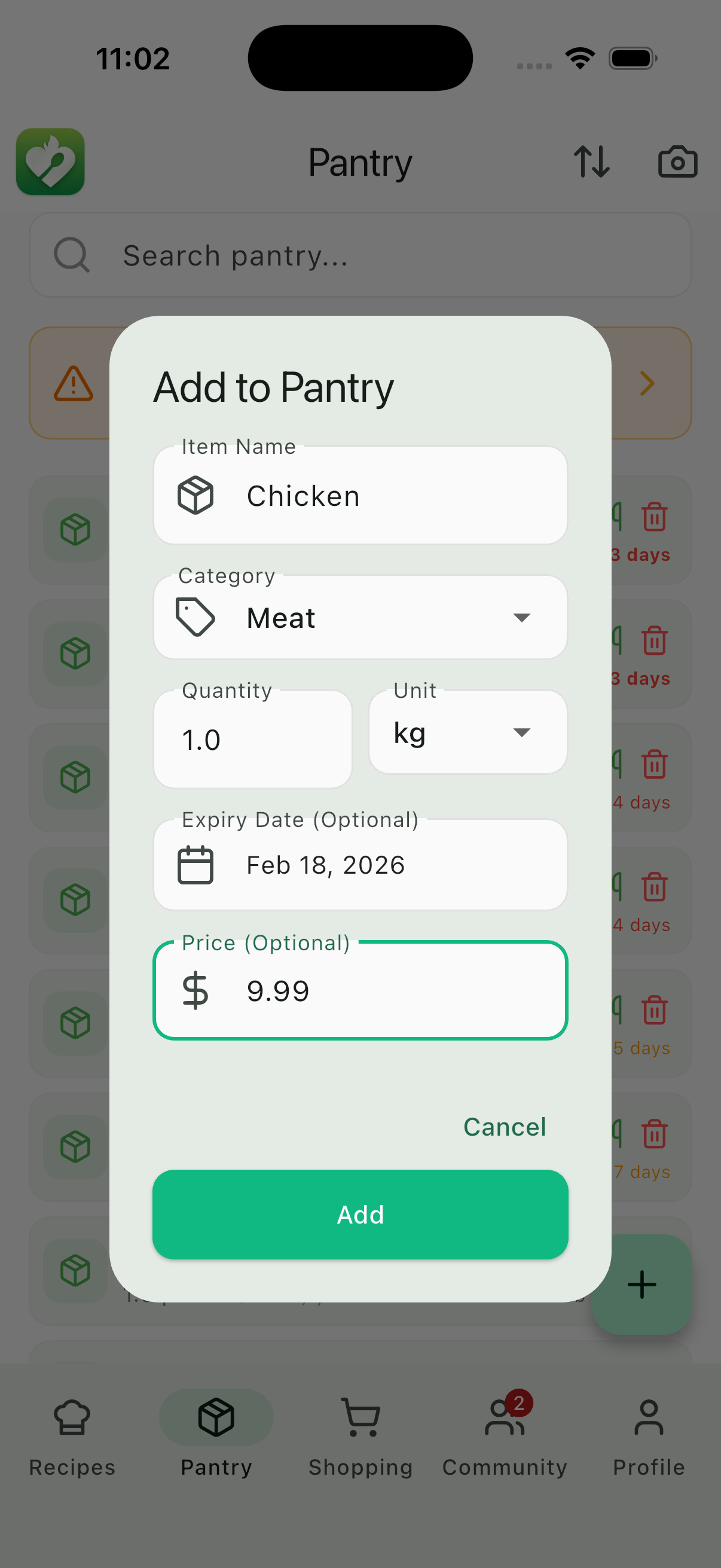 Designing community features also introduced complexity. We wanted real-time interaction without overwhelming users, and we needed to balance automation with trust — users must always feel in control of their pantry and shopping decisions.