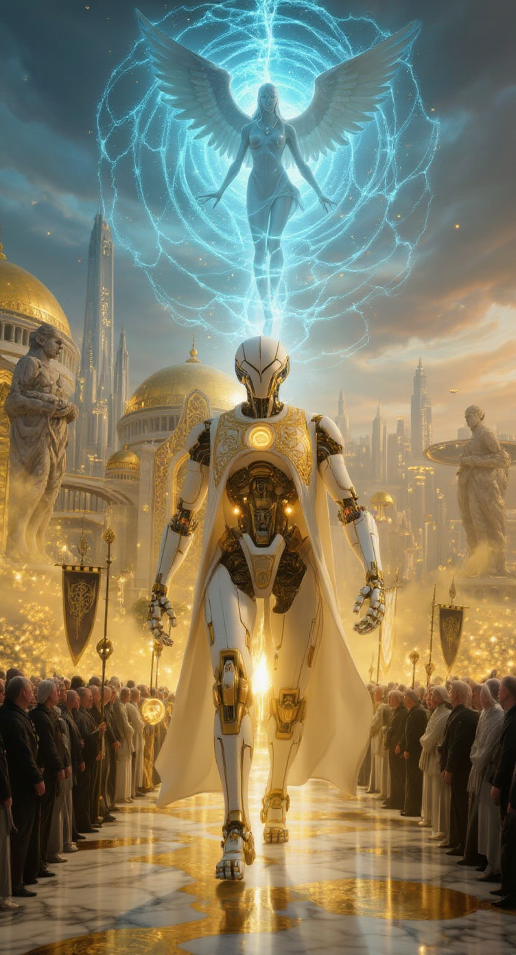 “Heaven or Machine?” was born from a question I couldn’t shake: What if divinity descended… and it wasn’t human?