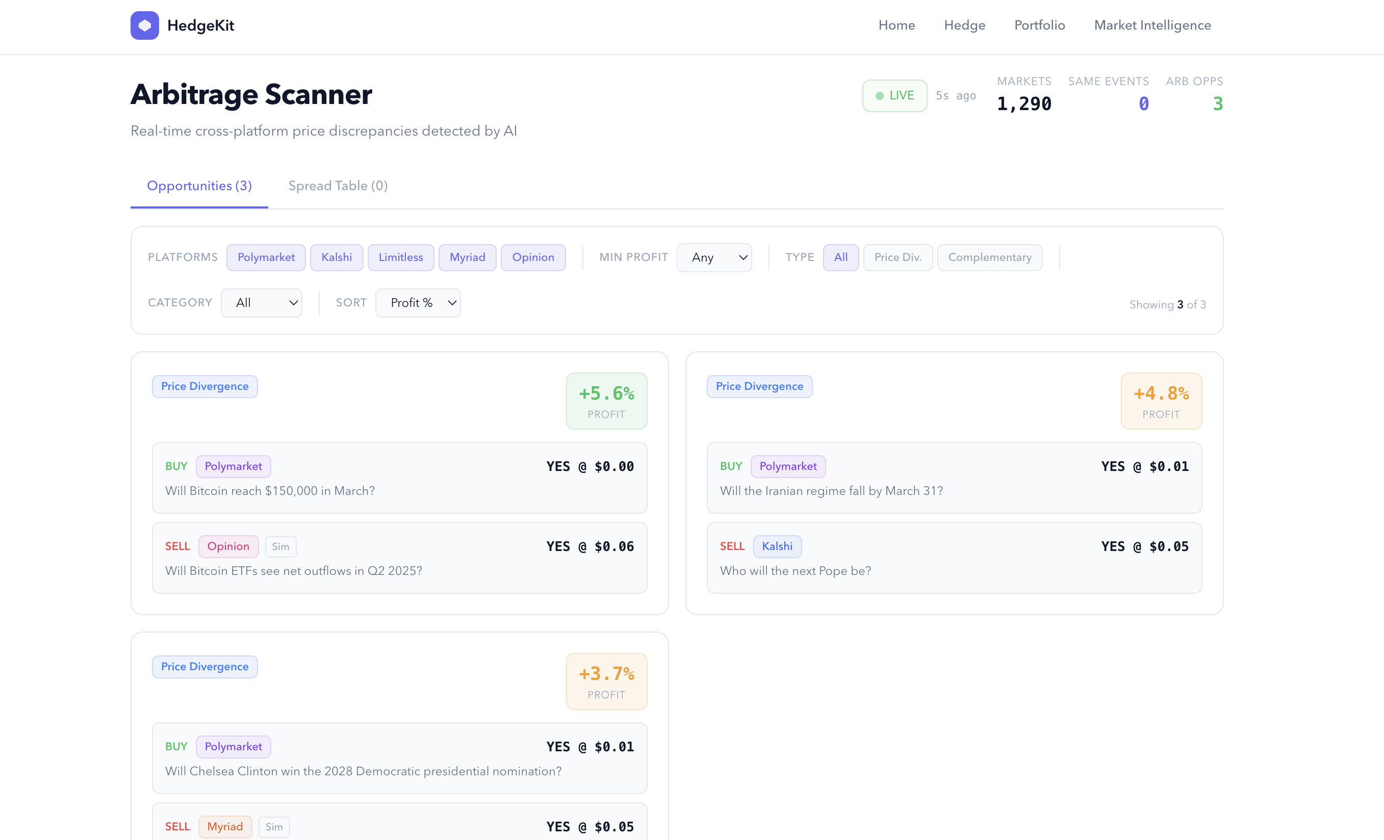 HedgeKit is an AI-powered risk copilot for prediction market hedging.