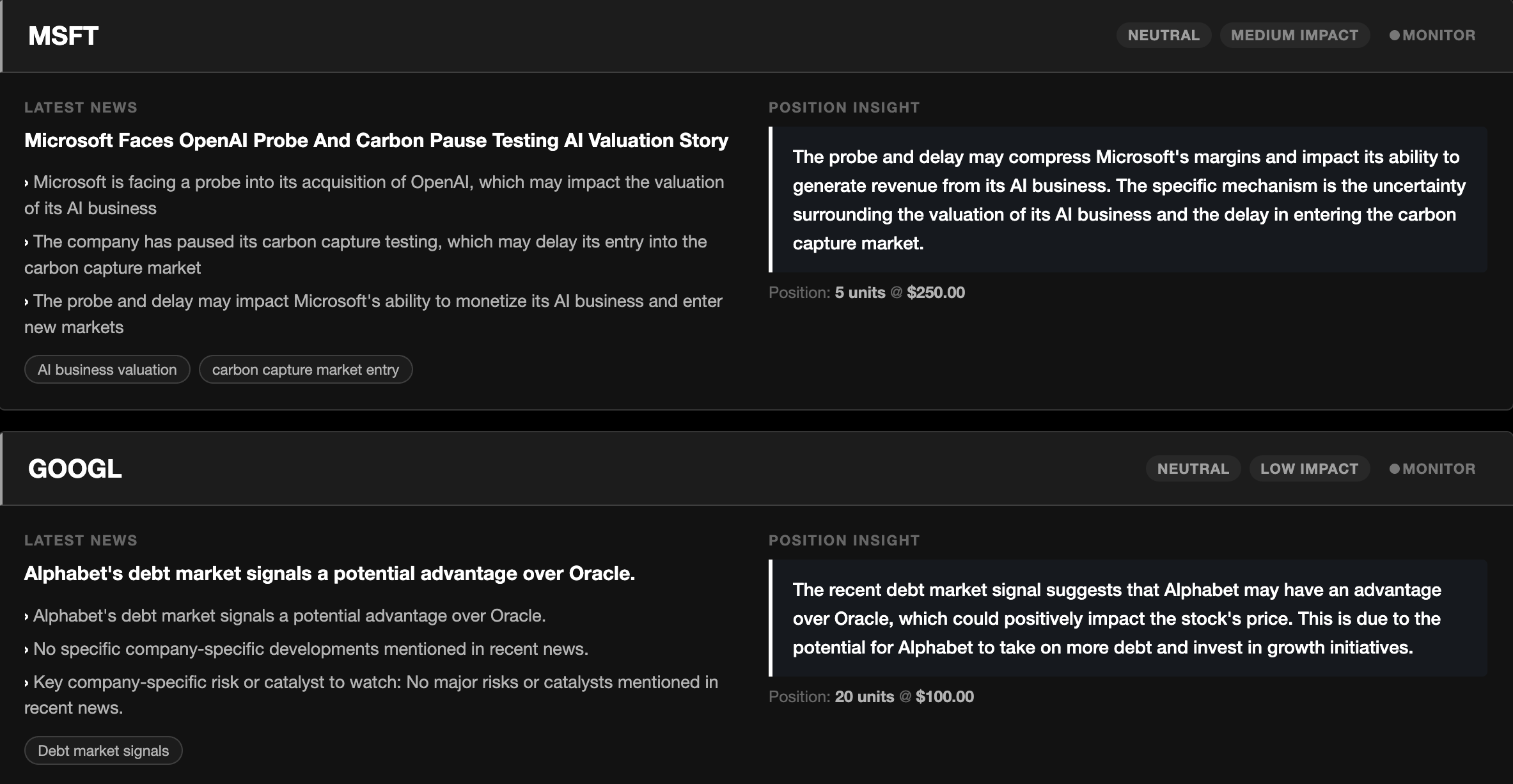 We were tired of finding out about bad news after the fact. You open your portfolio and you find out something is down 10% and you have no clue why. So you spend the next 20 minutes bouncing between news sites trying to piece it together, and get absolutely nowhere. Heimdall is our attempt to fix the headache.