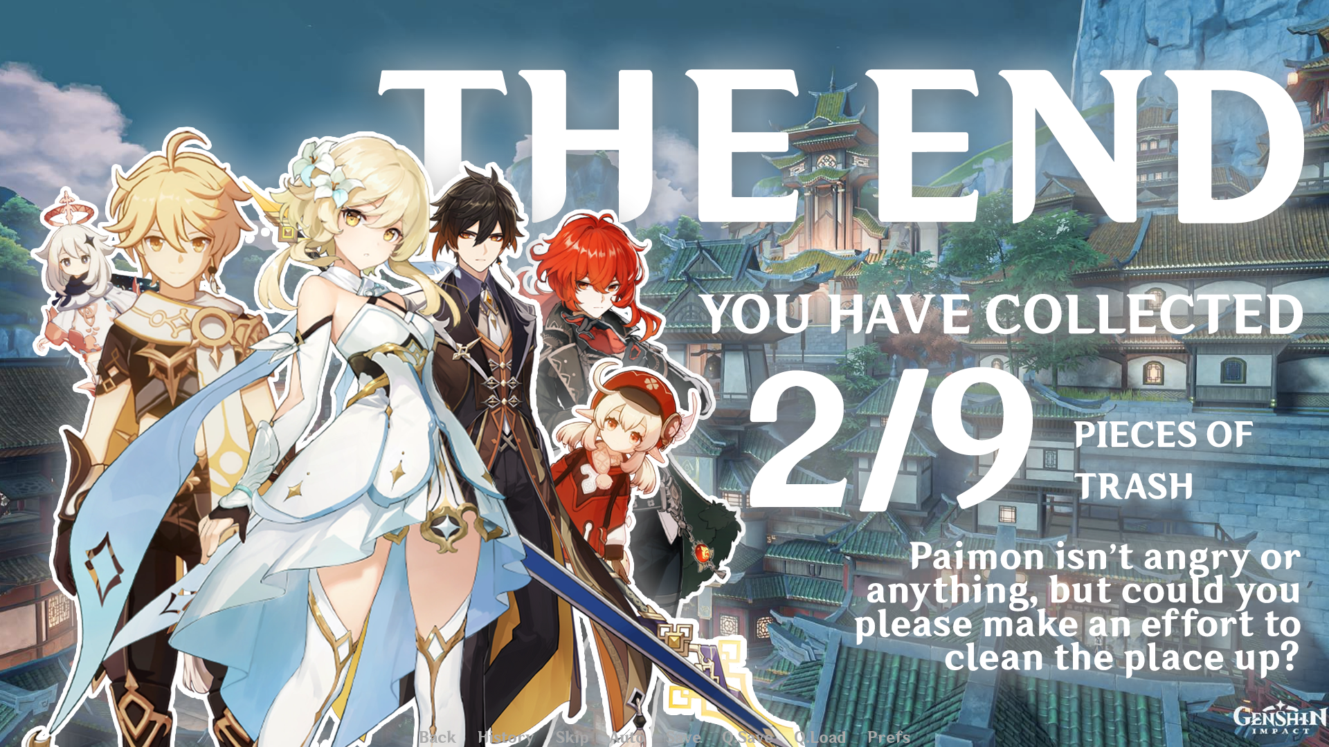 Comedy. This Project is the embodiment of comedy, ranging from Programmer humor to meta jokes related to the CodeJam event itself. As a non-canonical story to Hoyoverse's Genshin Impact, the story follows Aether in a quest to make the world a better place by picking up trash around the city, and somehow forgetting about his long-term journey to find his sister.