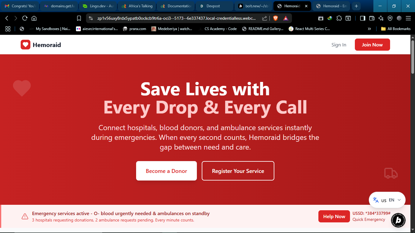 In my home country, getting a blood transfusion could mean the line between life and death. In evets when hospitals have no blood in their banks, families of loved ones use social media to appeal to the public for help. Such was the case during demonstrations last year in June where most injured people needed blood but without a proper structure of getting it to the hospitals they were in. Hece the inception of Hemoraid, a web app which ensures that blood donations appealsgo to the right people in time for them to go donate blood. Ambulances are also not fully intergrated in the health emergency helpline and the webapp allows for organisations running ambulance services to respond to calls at the tap of a button.