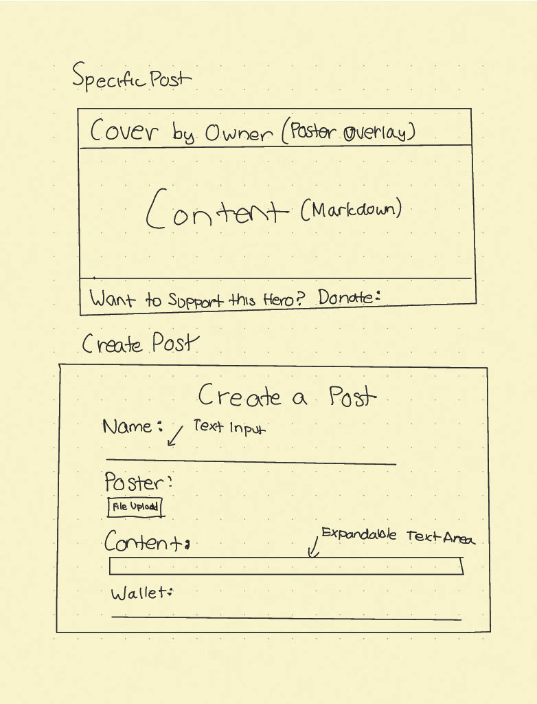 Users can use the create post functionality in order to share their post with the world, they can talk about their favorite hero(s), share their story, and help the hero continue their mission into helping the world.