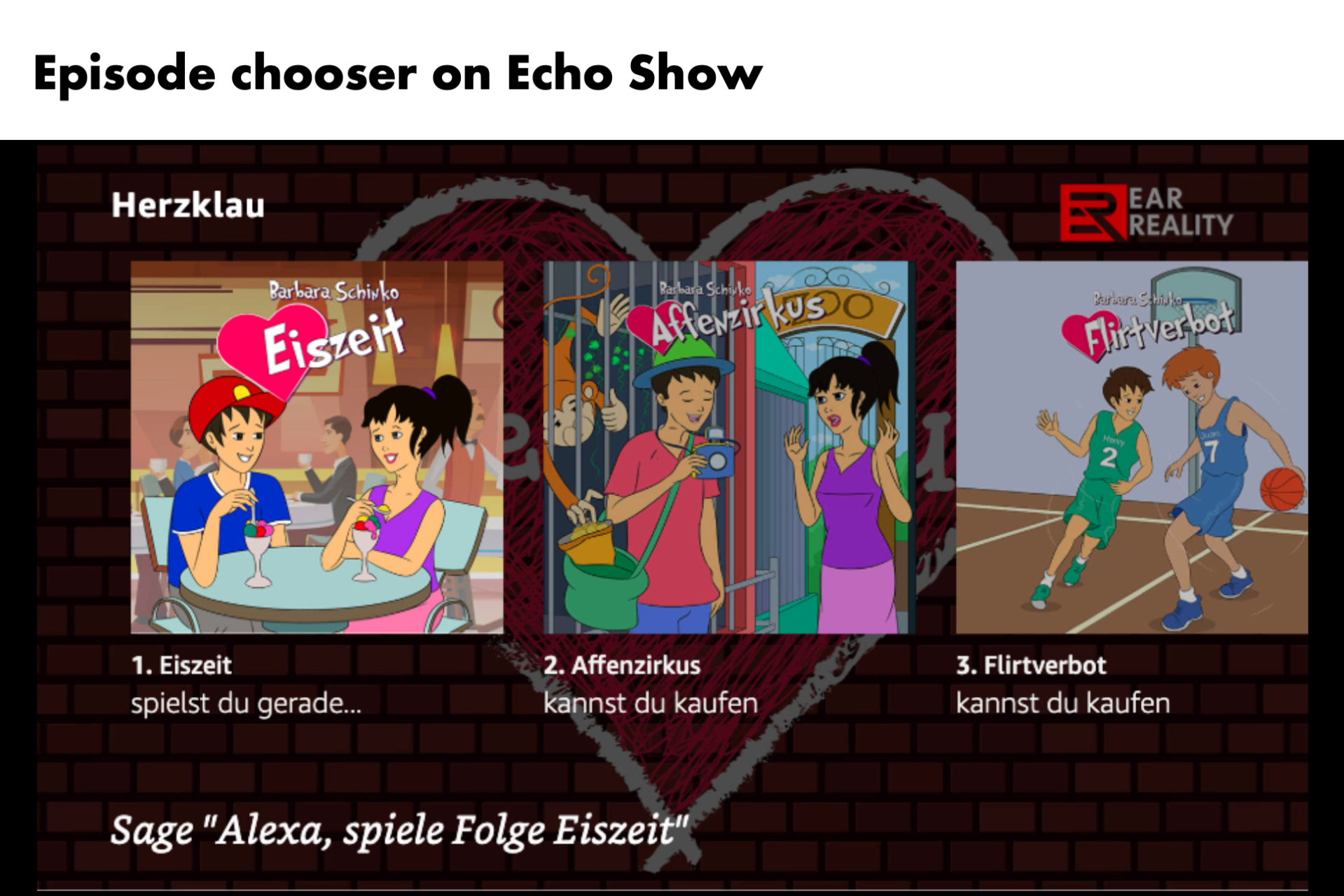 In the last two years we already created several successful interactive audiobooks for Amazon Alexa. Now, with ISP becoming an option, we choose to create an immersive and joyfull teenage lovestory with seven episodes, because we want to try out if ISP works great for emotional stories that hook the player strongly. The user plays a teenage girl who is dating a teenager named Henry. During the storyline the user will experience the ups and downs as well as the highlights and conflicts of a typical teenager relationship. Ex-girlfriends, family, interesting other boys, parties, school, each of the episodes makes sure to place the user in a different kind of setting with its own choices and several ways to play through the story. There are also different endings for the story, depending on how „successful“ you play.