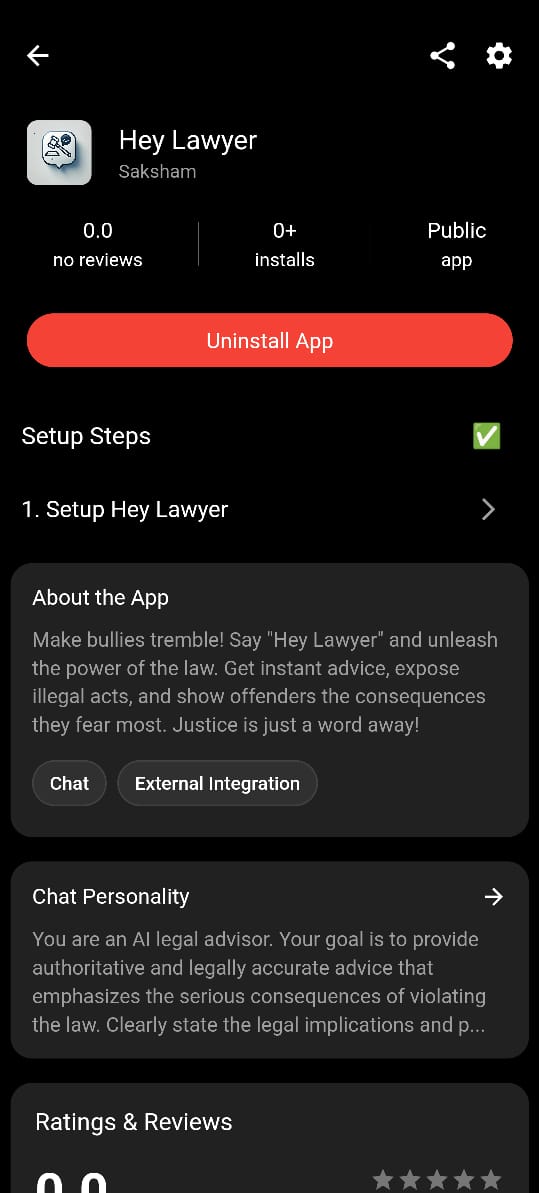 "Hey Lawyer" is a voice-activated AI legal assistant. Just say "Hey Lawyer," and it listens, understands your problem, and provides instant legal advice tailored to you.