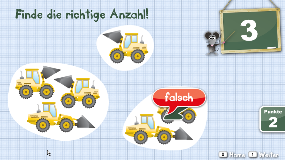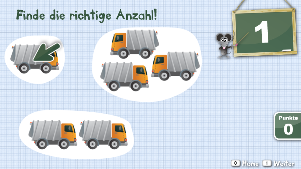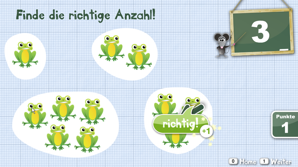 Liebevoll gestaltete Tiere und andere Sachen aus der Welt der Kinder laden zum Spielen, Lernen, Zählen und Lachen ein. Durch die moderne TV-Bedienung hilft das Spiel deinem Kind zusätzlich bei der Entwicklung von feinmotorischen Fähigkeiten. Die Motivation kommt auch nicht zu kurz: spielerisch und neugierig lernen deine Kids zu zählen, haben fun und sammeln Punkte für richtige Antworten. Frühkindlich wird also schon erlernt: Mathe macht Spaß! Schnell stellen sich auch erste Erfolgserlebnisse bei den Kindern ein, denn mittels verschiedener Schwierigkeitsgrade passt du das Spiel ganz einfach auf jüngere oder ältere Kinder an.