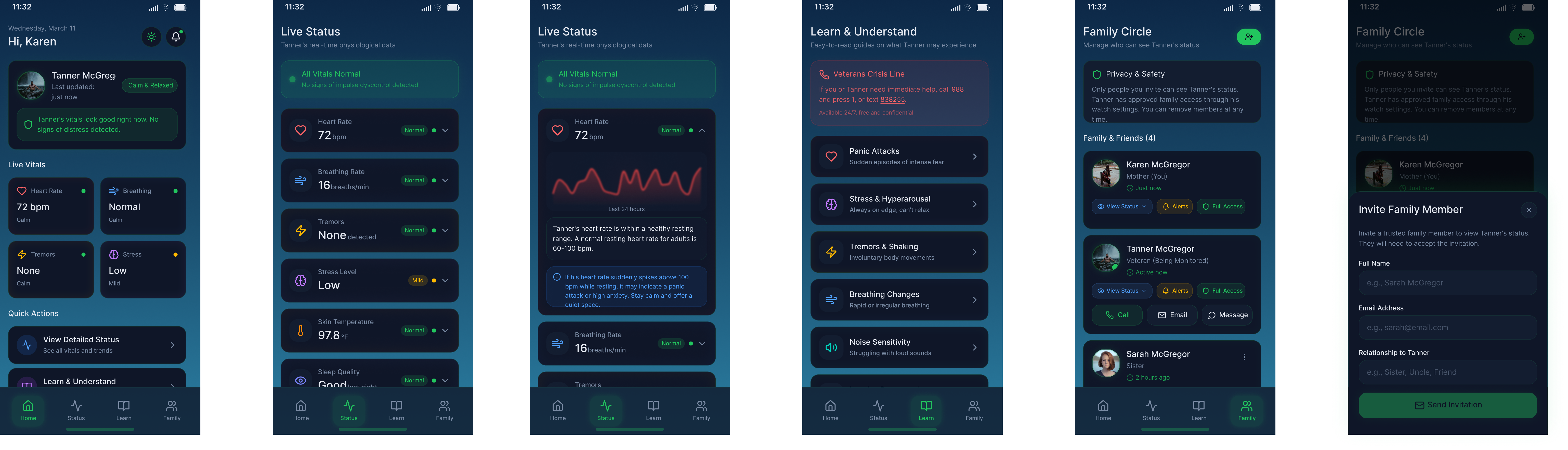 We wanted to focus on a typically overlooked audience in product design, which we identified as veterans. A few members of our team have veterans in their families and shared experiences about what life looked like for them after returning home from retirement. Many of these stories were difficult, describing the struggles of adjusting back to everyday life.