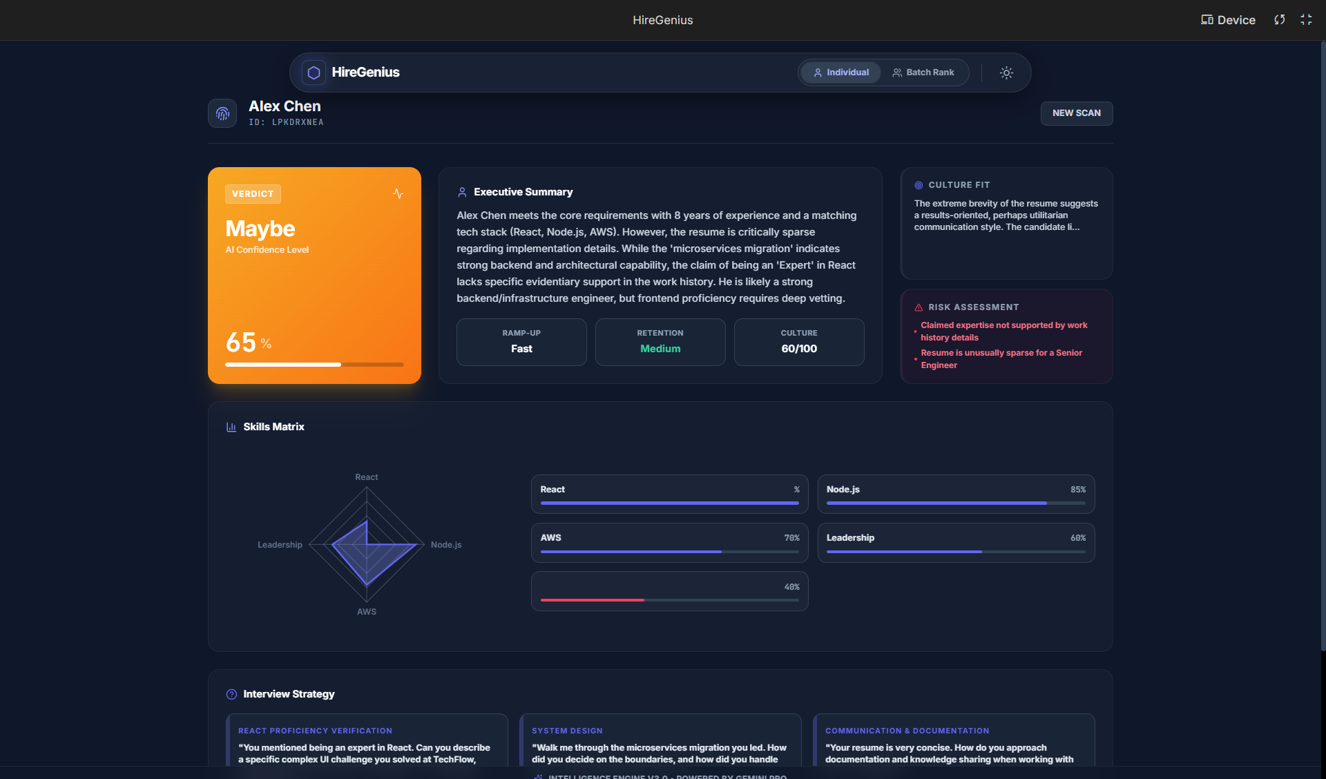 HireGenius analyzes candidates like an expert recruiter—holistically, not just keyword matching.