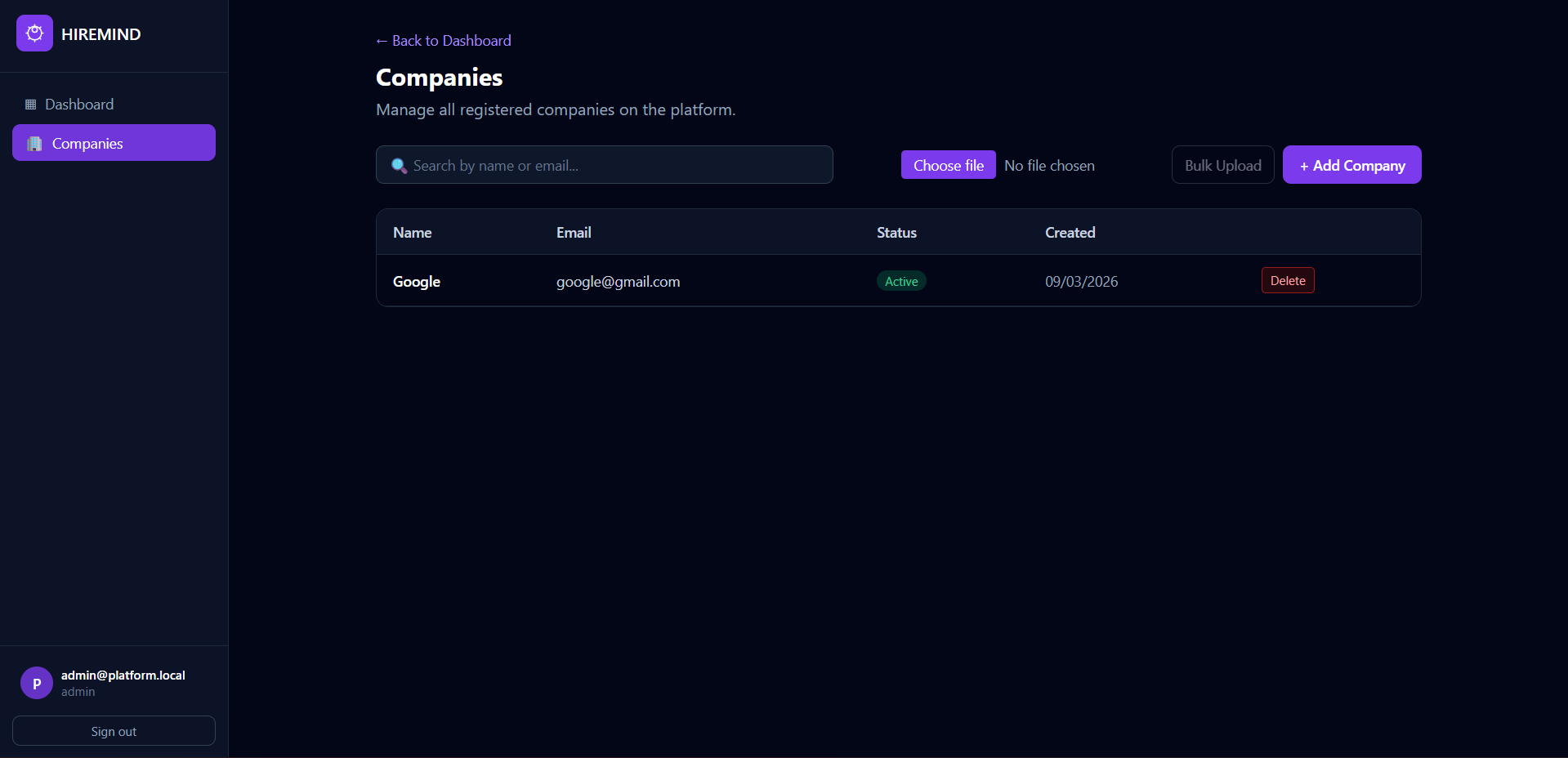 Admin adding Companies that subscribes to the platform