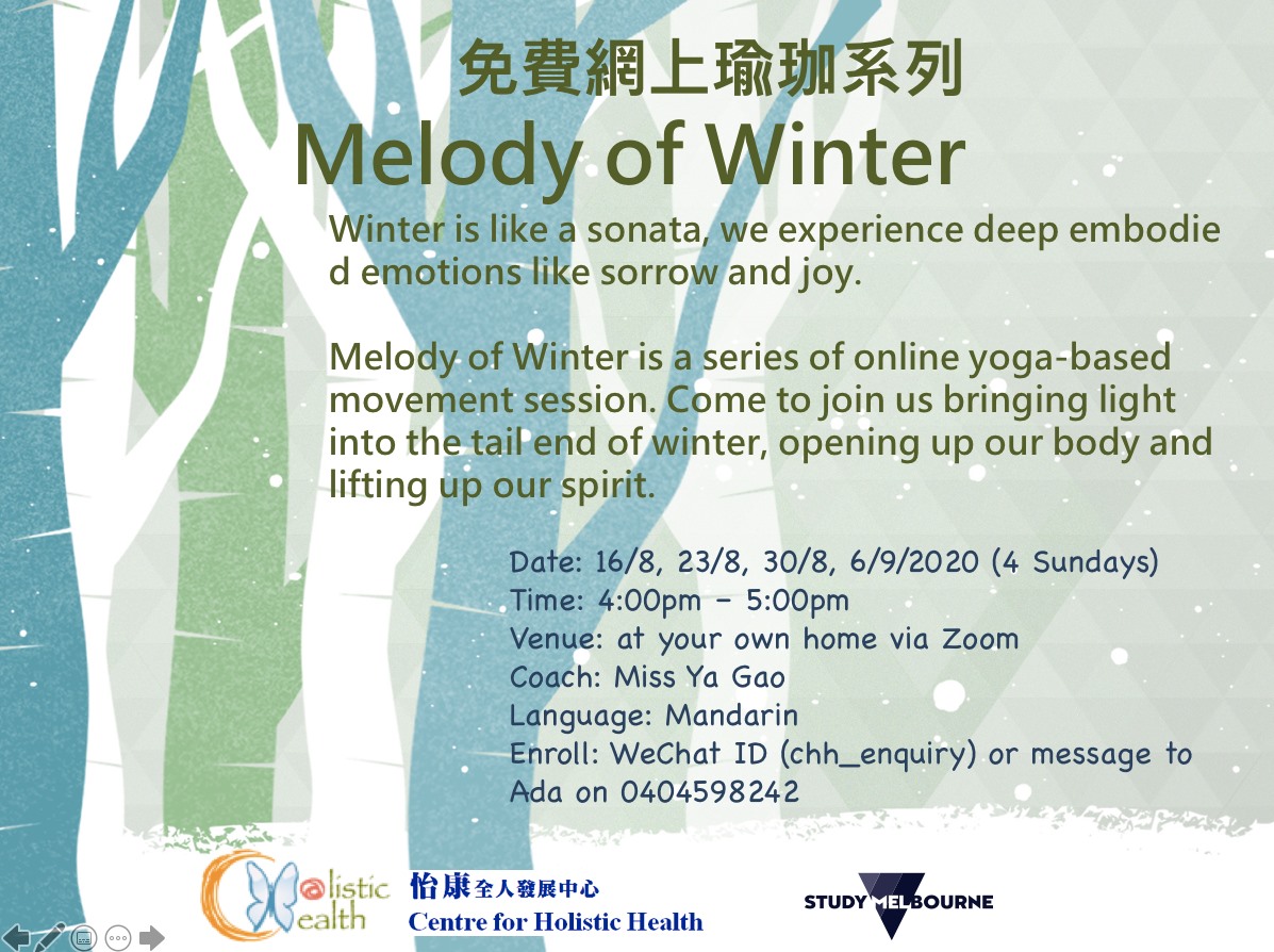Arts can heal and arts have power, especially for mental wellbeing. During the lock downtime in Melbourne, arts help me go through the darkness. I have been coaching online yoga which helps to bring light into people's daily life when staying home. I think pandemic makes people realize that we should keep taking more care of our minds. In the post-Covid period, people will need to recover from the pandemic and readjust them to the new normal.