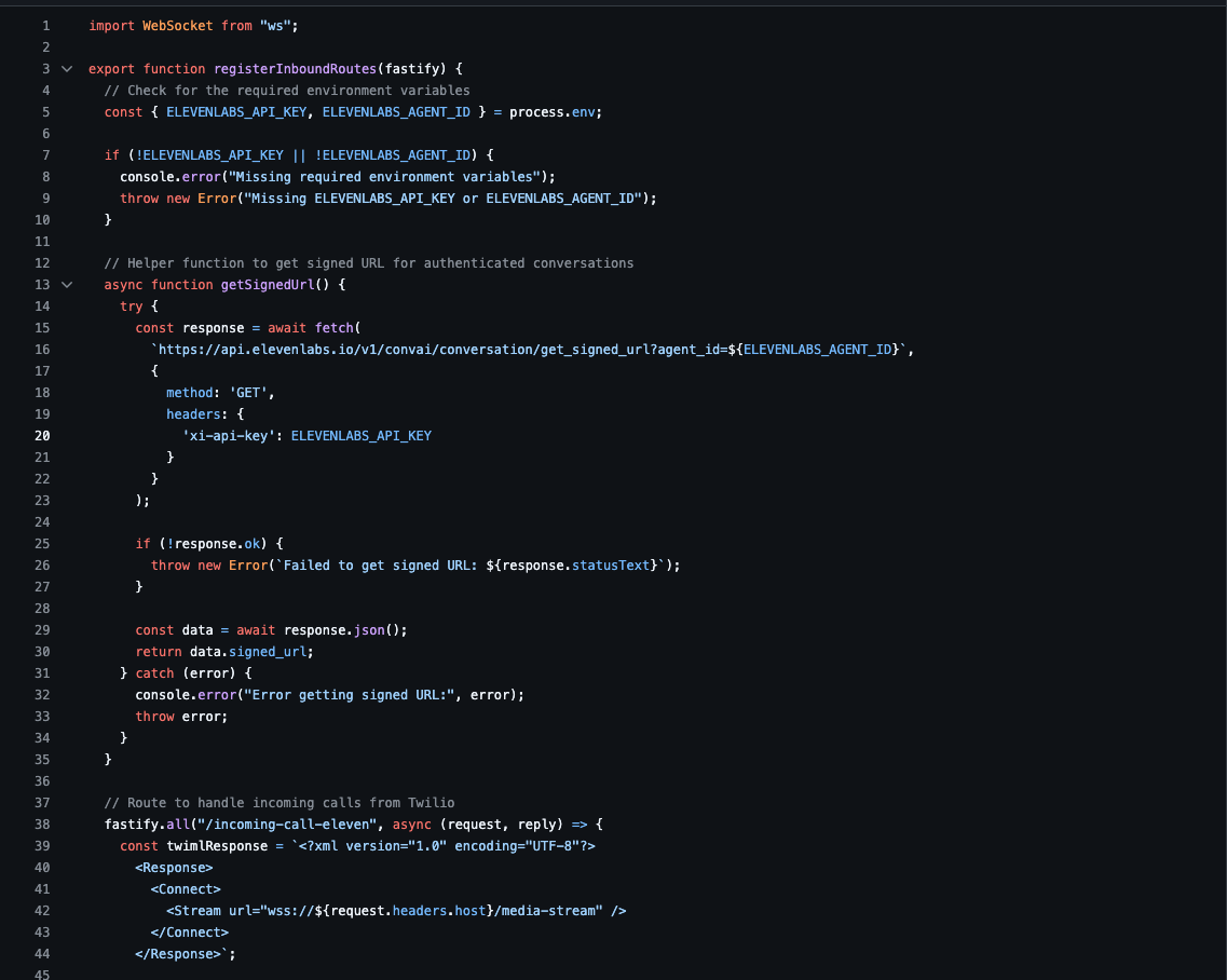 🐛 Twilio + Eleven Labs Custom Websocket Server Bugs Integrating Twilio for call handling with Eleven Labs’ voice agent required a custom server implementation, which proved to be buggy and unreliable at times.