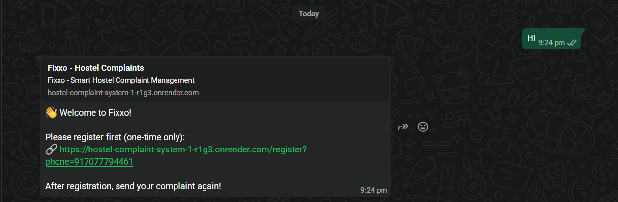 HostelNova AI is an intelligent WhatsApp-based complaint management system that allows students to report issues simply by sending a message or image via WhatsApp. The system uses AI to automatically: Classify the complaint category (plumbing, electrical, WiFi, etc.) Extract important details such as hostel name, room number, and issue summary Assign the complaint to the correct department Send instant notifications to responsible staff Track complaint status and automatically notify students upon resolution This removes the need for physical registers and manual email forwarding.