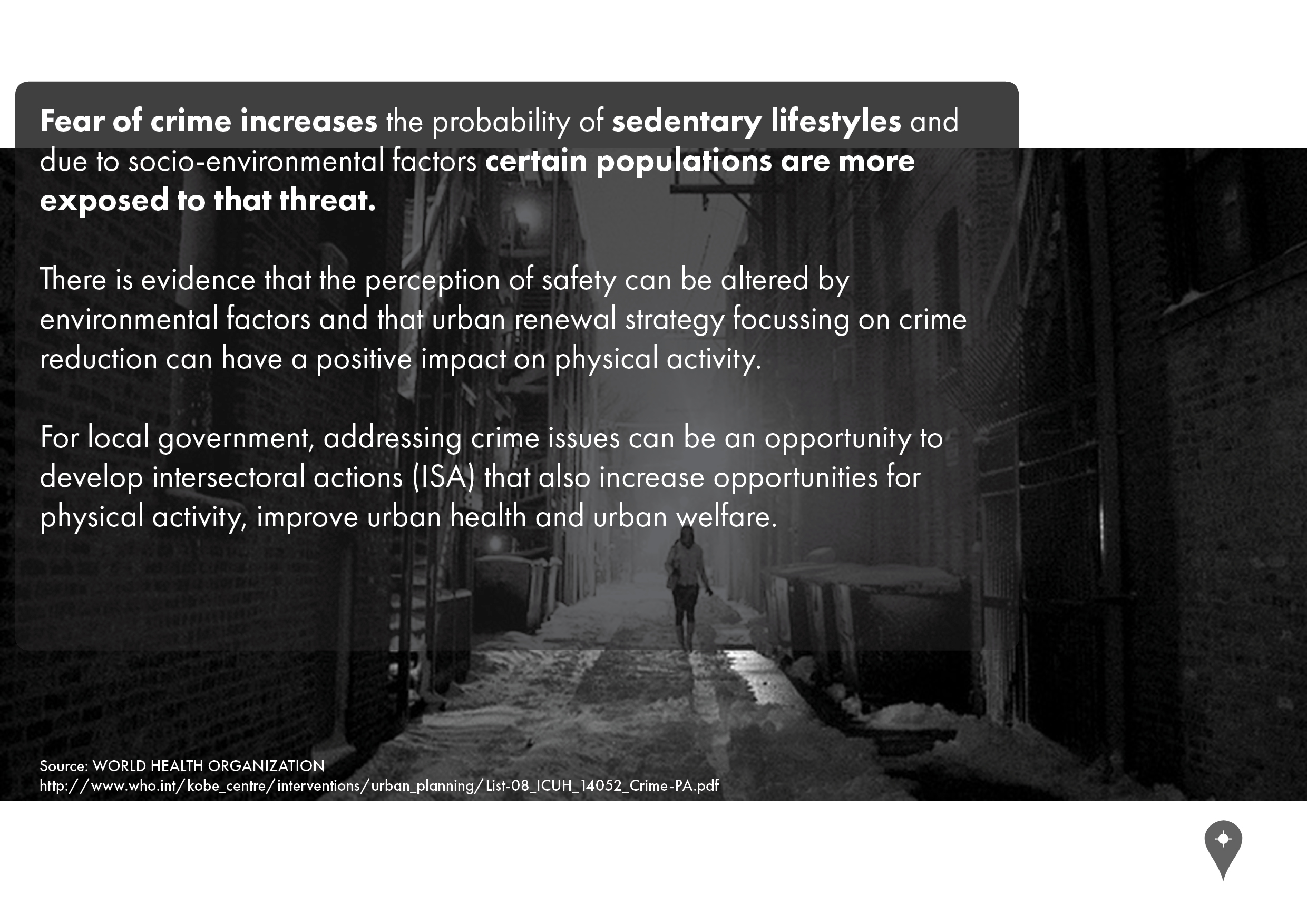 PROBLEM WE ARE TRYING TO SOLVE : Fear of crime increases the probability of sedentary lifestyles and due to socio-environmental factors certain populations are more exposed to that threat - World health organization Public safety is a top priority for any concerned government,