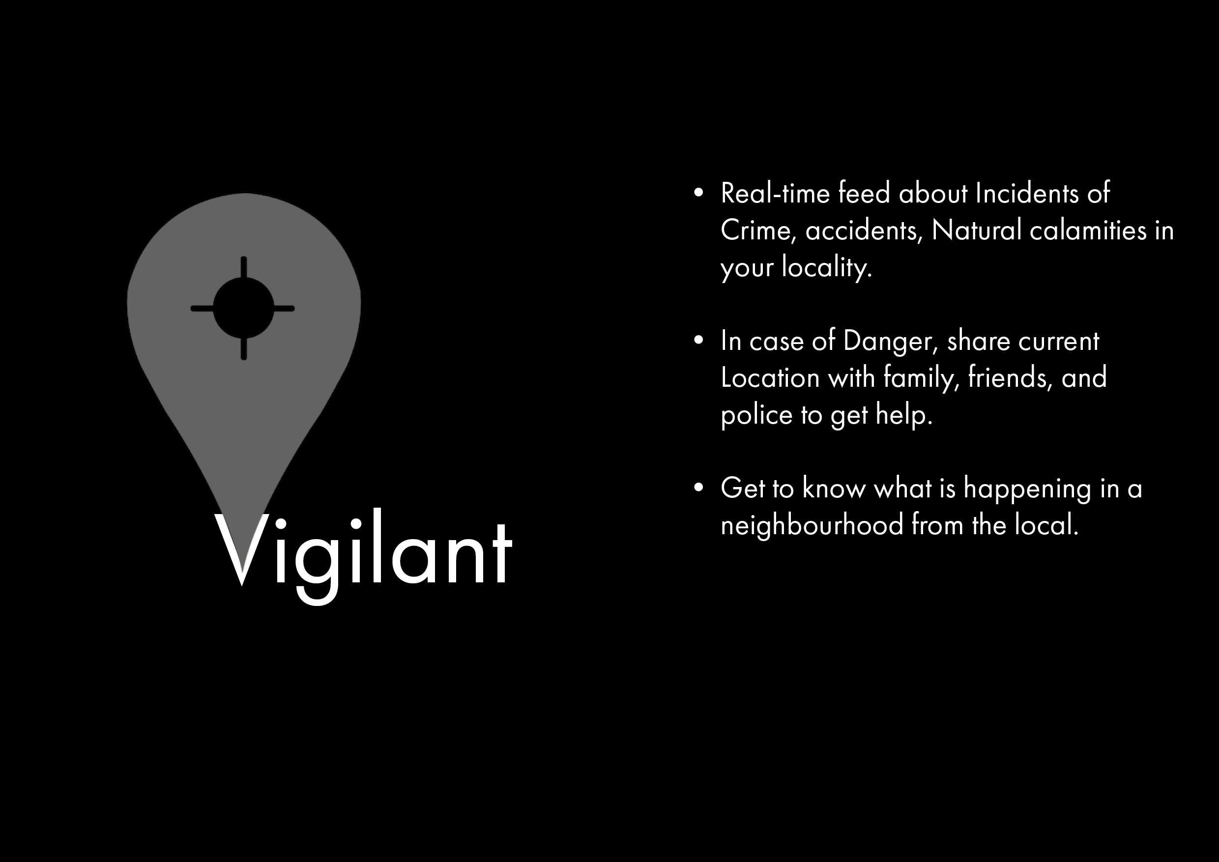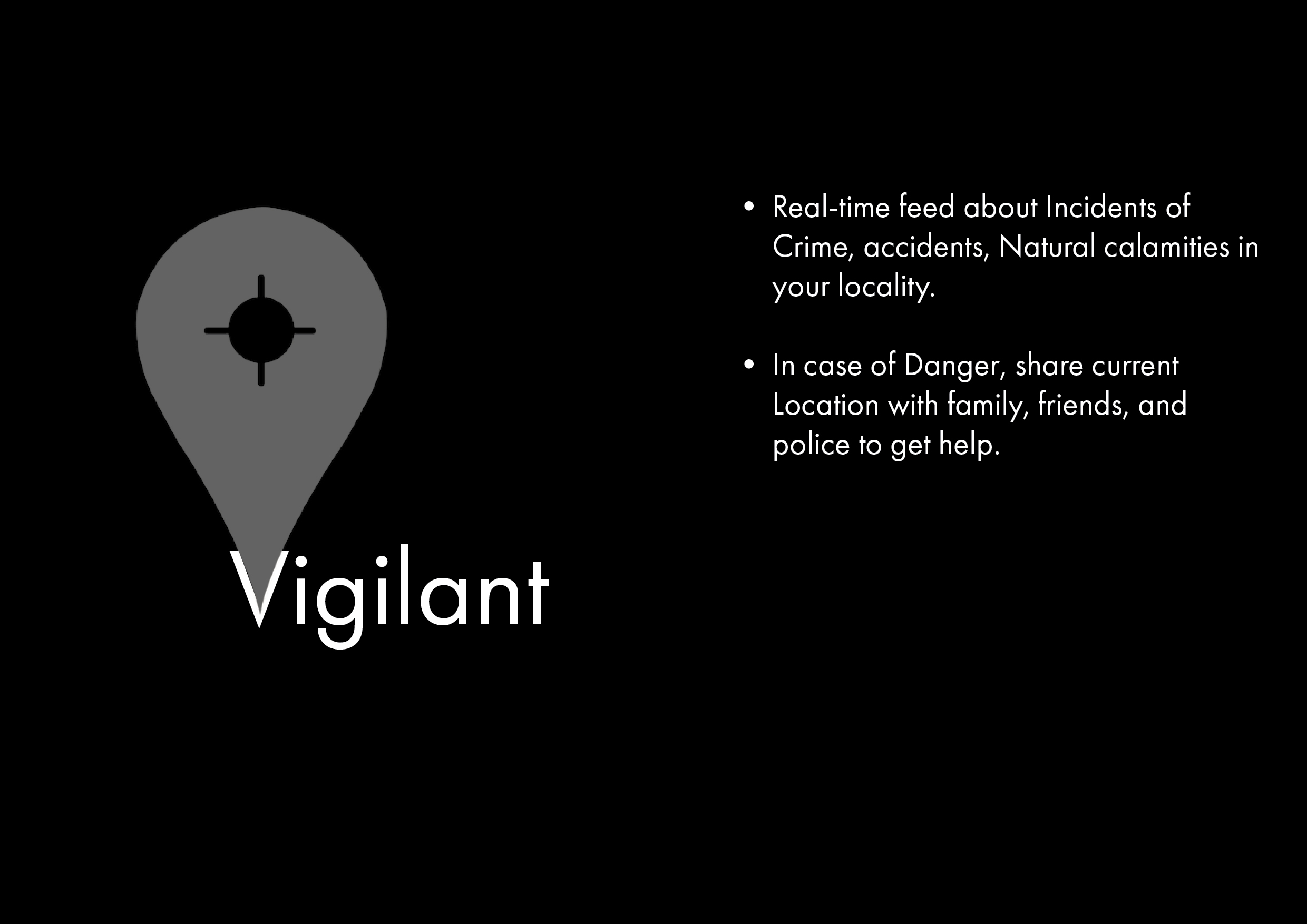 WHAT ? VIGILANT Is a platform that helps you be more aware about your surroundings and get alerts from First responders and news feed.