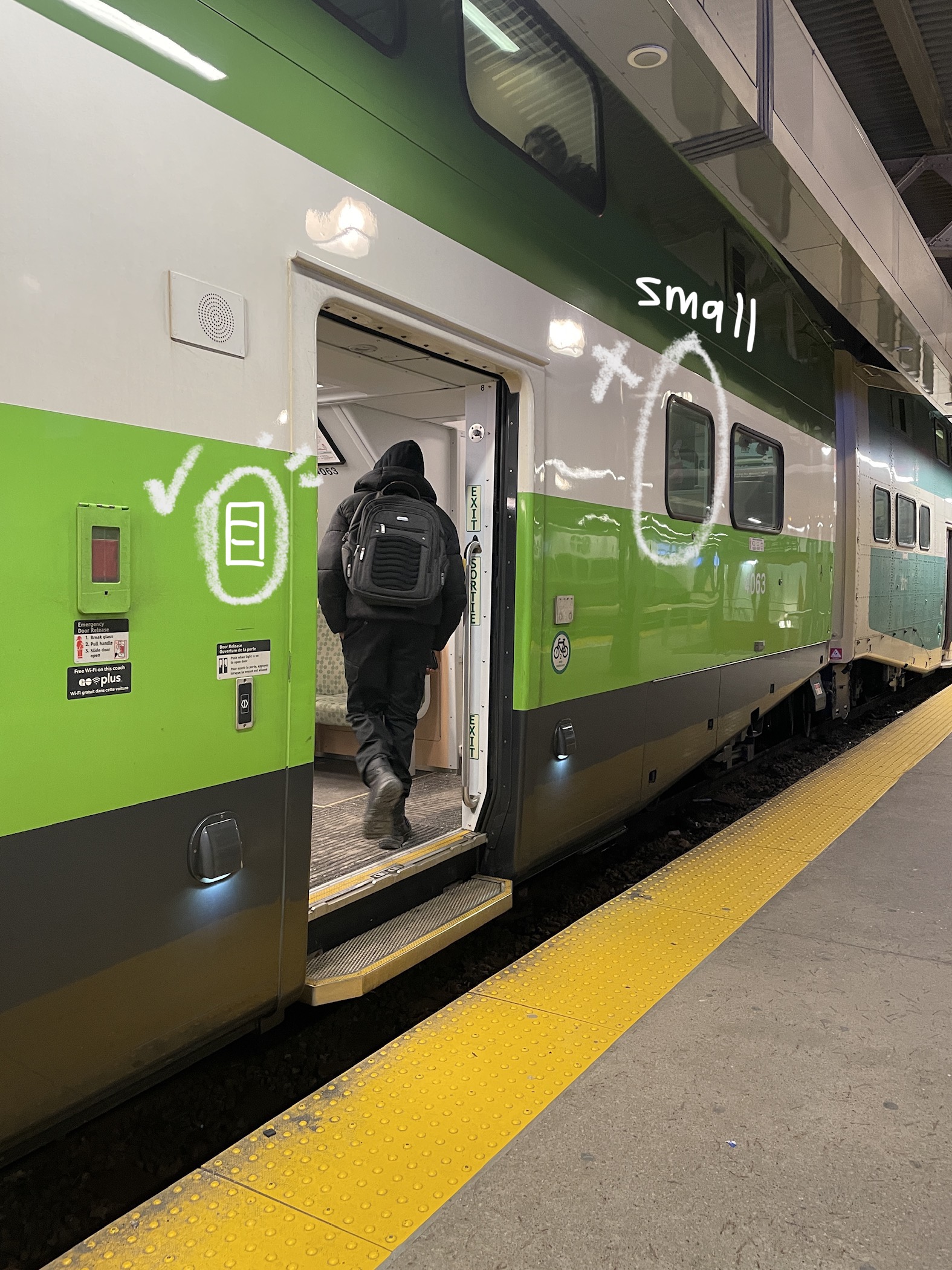 GOFlow is an AI-powered tracker that enables GO Transit passengers to better gauge the capacity of train carts before boarding. Through light hardware and GUI visual representation that reflect the fullness of the cart, the GOFlow leads to safer, less crowded rides, reduced risk of incidents, and lower impedance to medical emergency services.
