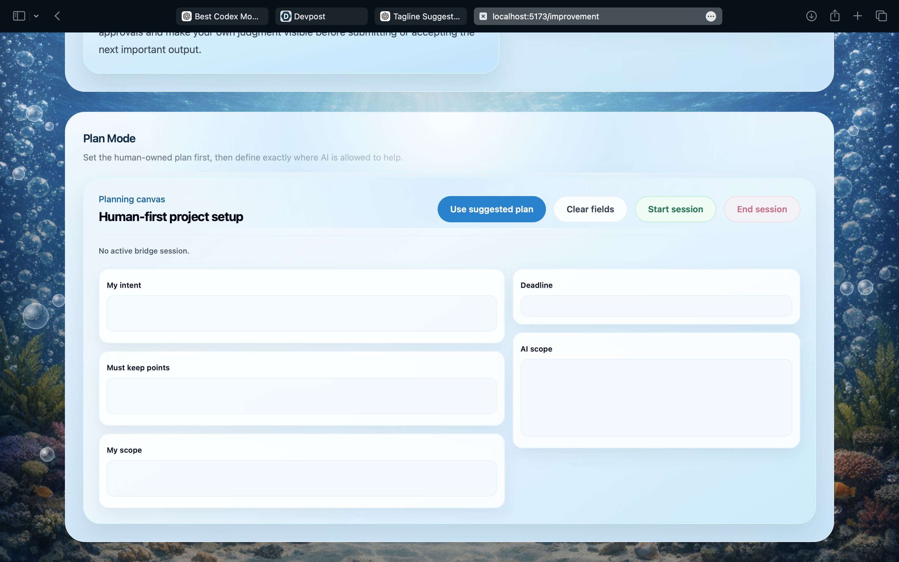 Users can input a situation or problem, and the platform presents both a human-centered perspective and an AI-driven response. By visualizing these differences through a deep-sea themed interface, the project encourages users to think beyond surface-level answers and understand the depth, trade-offs, and long-term impact of each approach.