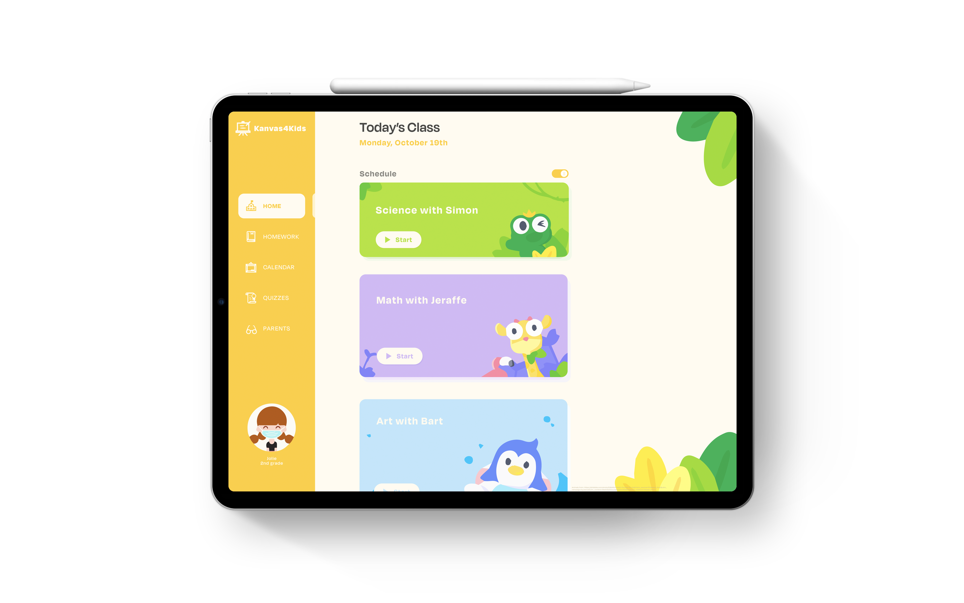 Introducing Kanvas4Kids, the LMS that integrates and streamlines both virtual and in person learning. Modern day LMS's are more geared towards older students, and contain many elements that while useful for secondary or even tertiary schoolers, is too complex and unnecessary for elementary aged children. Kanvas4Kids is a lightweight web and tablet application that allows teachers to compile lessons and homework in one place. The easy and simple to use interface eases the learning curve for both students and teachers alike, and encourages children to complete their lessons and homework.