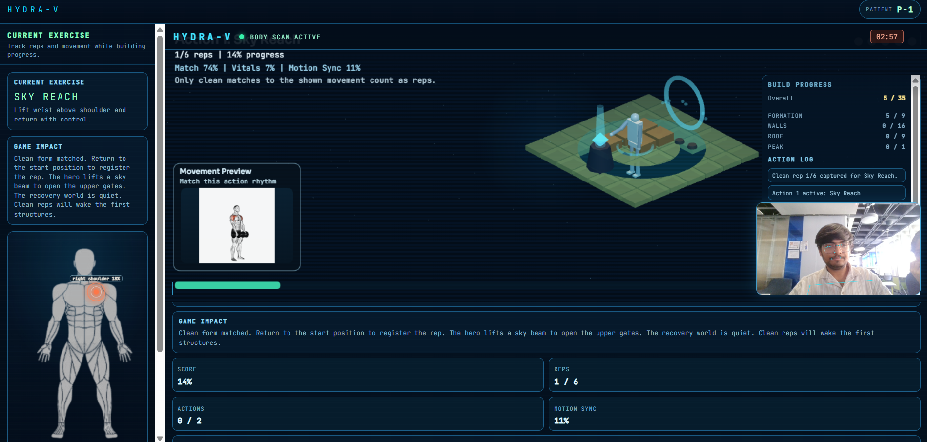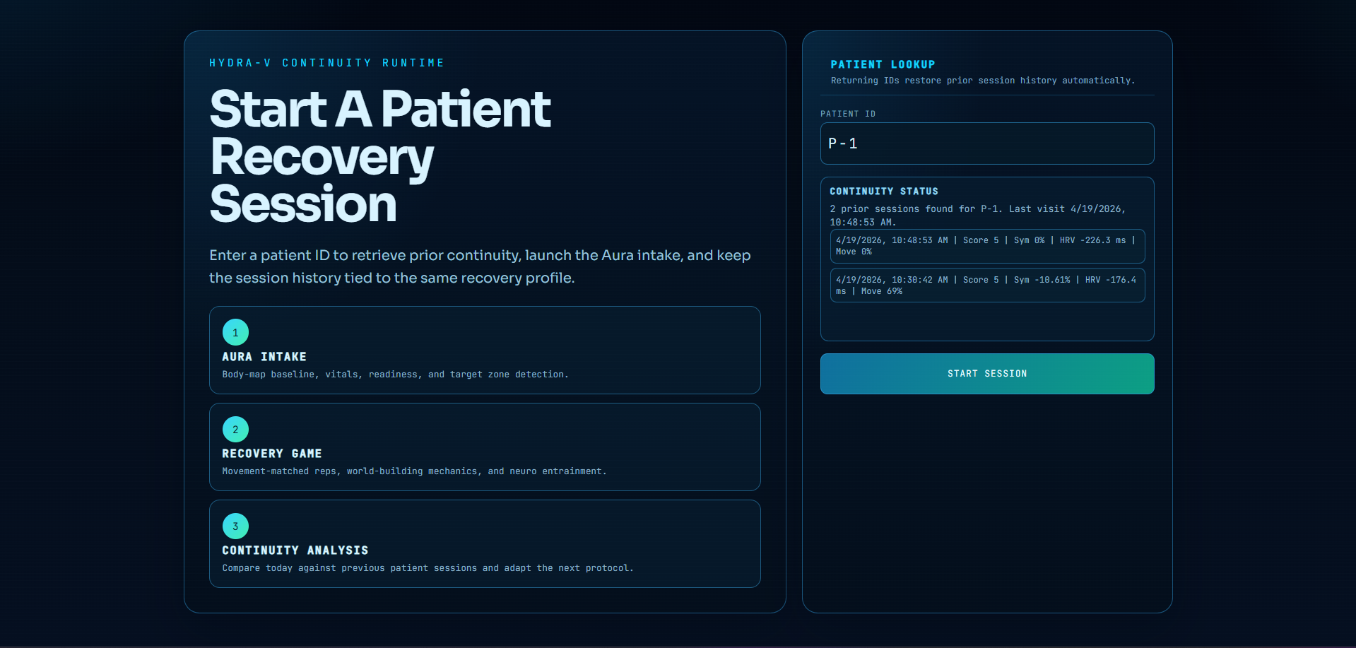 What it does HYDRA-V is a neural operating system built on Hydrawav3 that uses a webcam to extract signals like HRV using rPPG, movement asymmetry, and signs of nervous system fatigue. It uses this data to adapt therapy in real time by priming the brain, syncing stimulation to the heartbeat, and guiding recovery through audio and immersive interaction. Over time, it learns what works best for each individual.