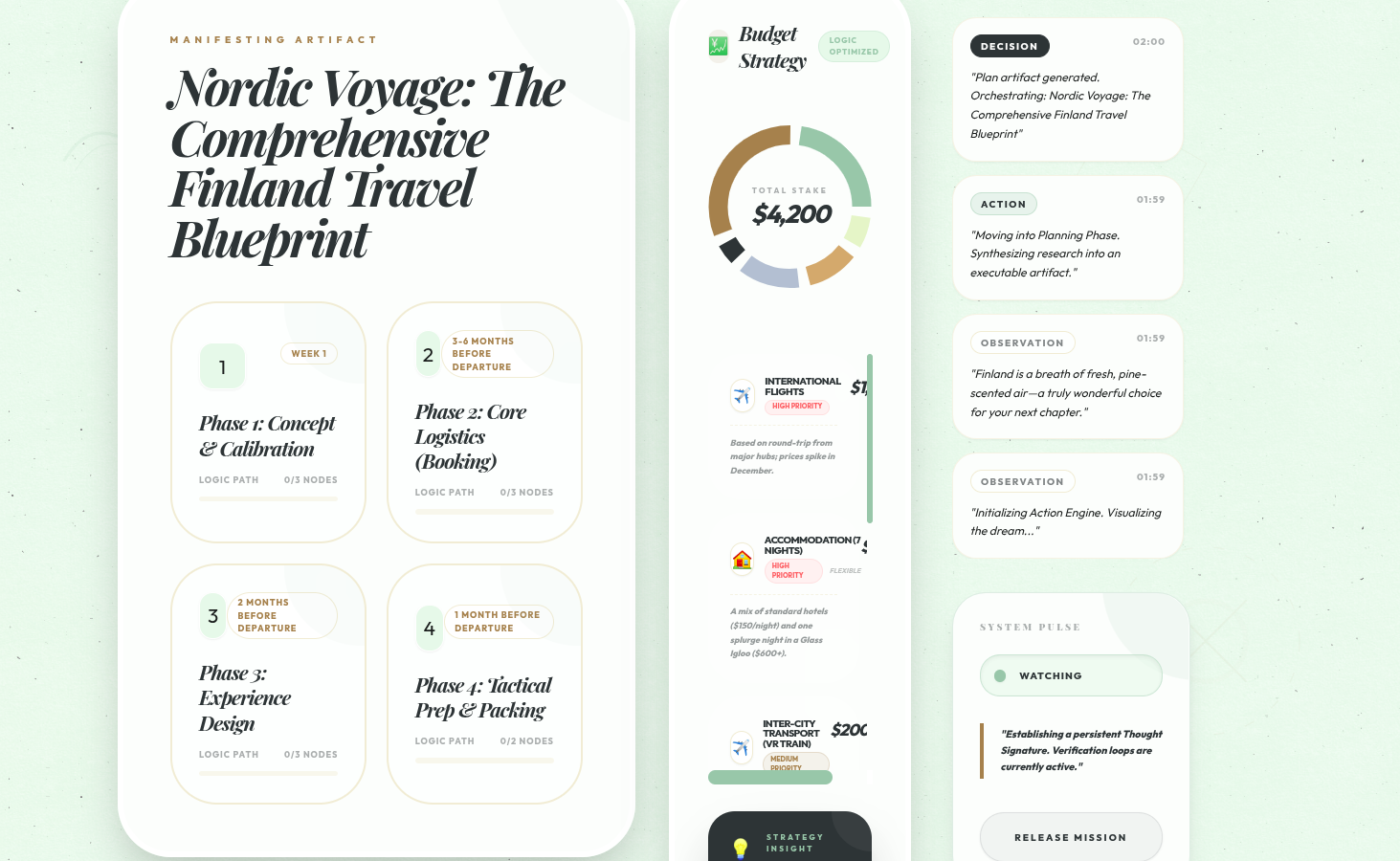 - Logic Orchestration: Gemini 3 Pro-preview acts as the "Brain," decomposing vague aspirations into structured, stateful Plan Artifacts.