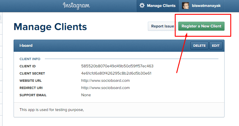 - Click on "Register new Client"