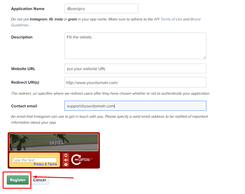 - Fill the dtails of your application in given form and click on register.