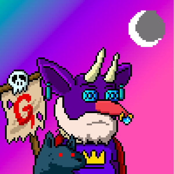 Purple body, king shirt, goblin flag, nose ring with diagonal gradient and crescent moon