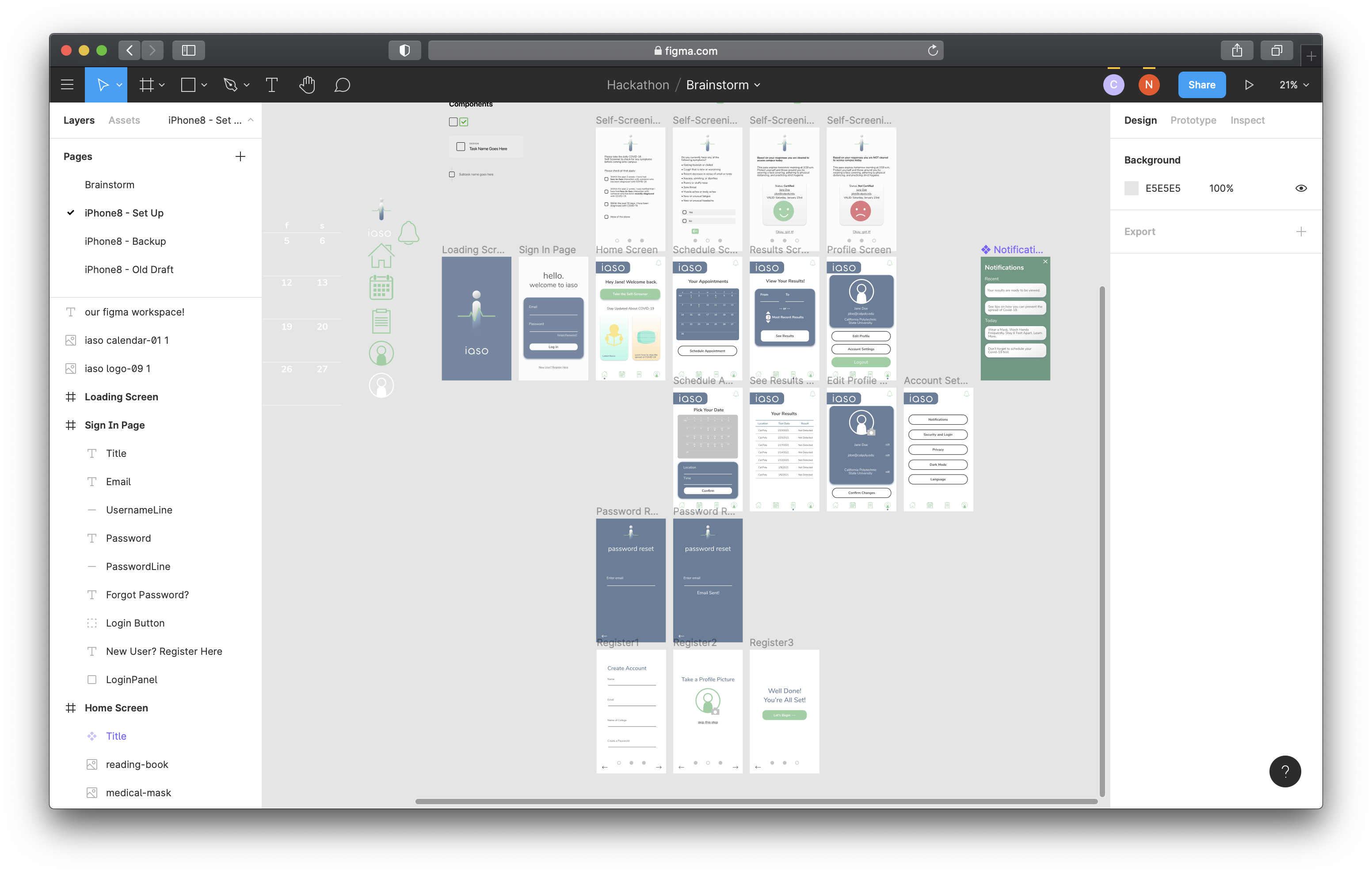 During COVID-19, Cal Poly students coming onto campus are required to take a self-screening test, as well as schedule for a COVID test twice a week. After taking the test, we have to view our results through the Avellino website, which does not work well consistently. We have had our fair share of these frustrations and wanted to create a solution: an app called iaso, a single place where you can do all of these tasks.