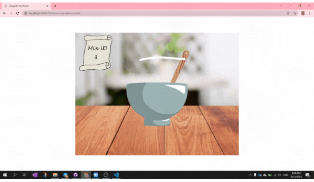 - The gingerbread making segment of the story was inspired by cooking mama, and it was challenging to figure out not only how to adapt the touchscreen based games for pc, but how to implement it with javascript as well.