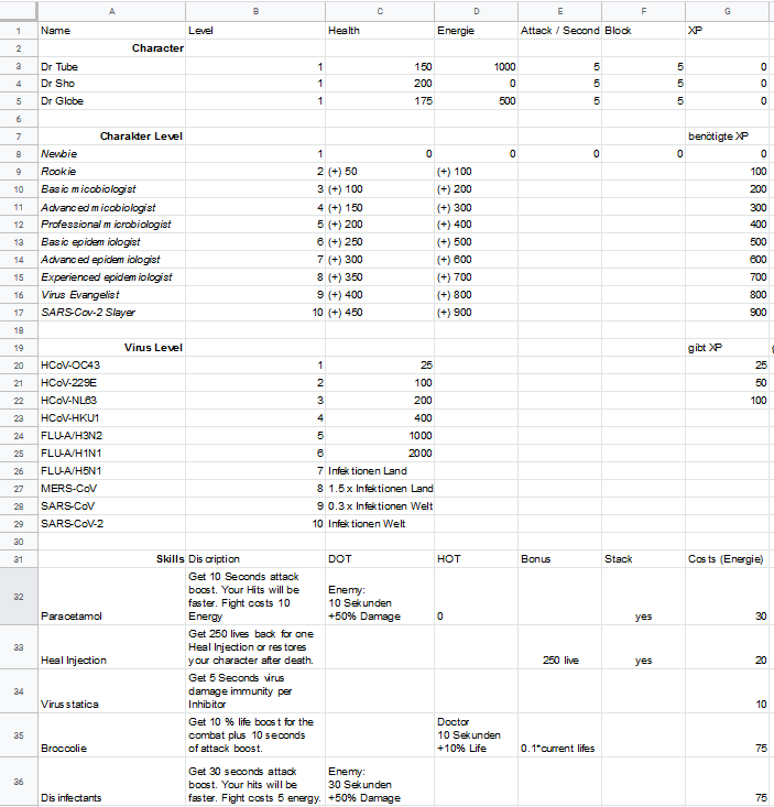 Einbindung des Levelns des Charakters und der verschiedenen Virus-Stadien