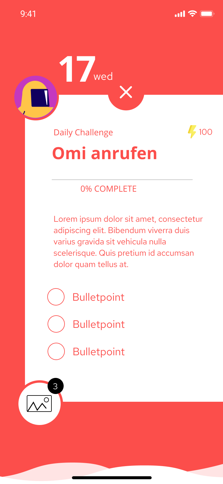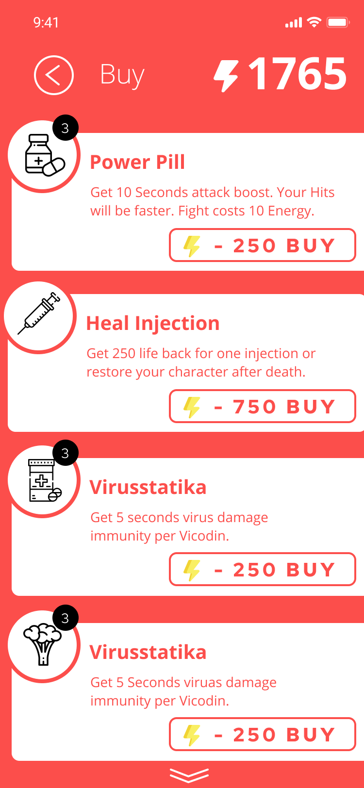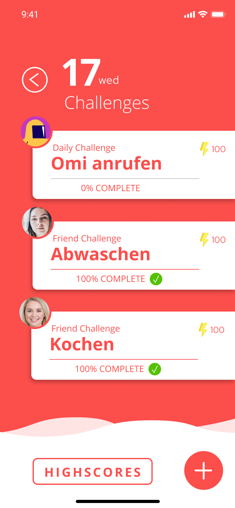 Zusätzlich bekommst du Energie, indem du Challenges absolvierst, die dir und auch anderen ein gutes Gefühl geben, wie deine Omi anzurufen oder dich mit deinen Freunden auf ein digitales Kaffeedate zu treffen. Deine Freunde können dir auch challenges stellen und sie entscheiden dann, ob du die Energie bekommst.