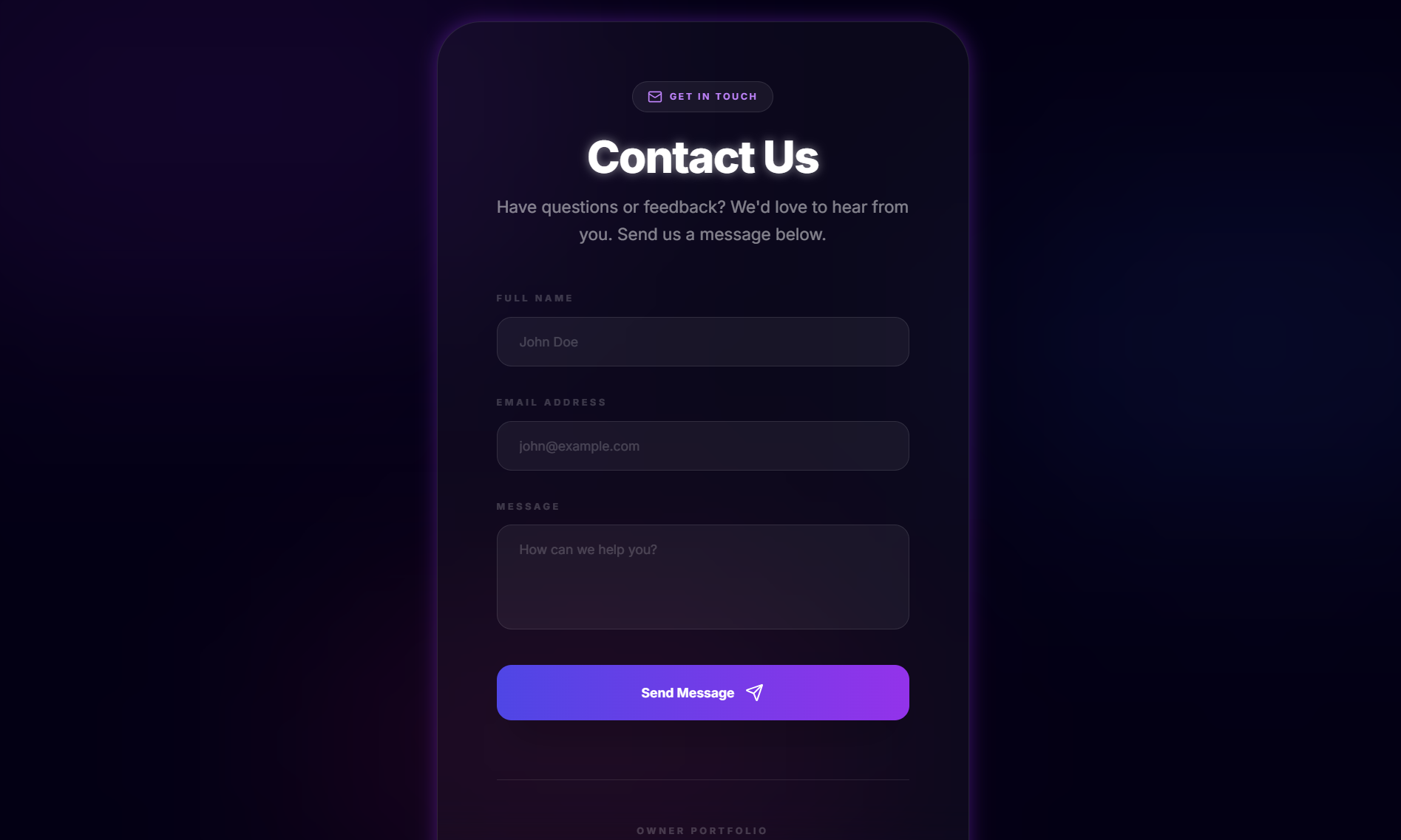 AI-powered contact system with validated form and dynamic response handling for real-time communication.