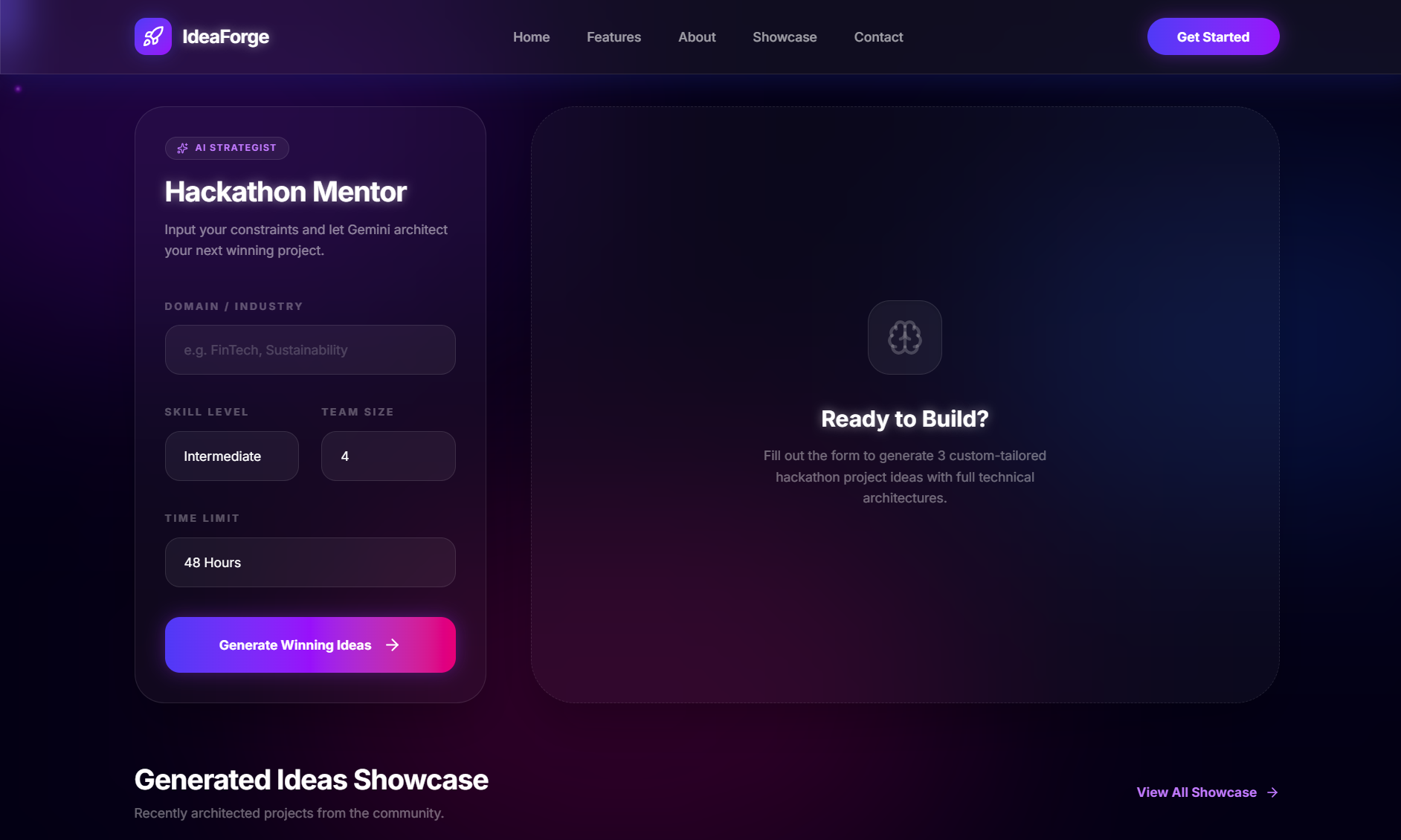- 🖼️ Live Showcase: A dynamic gallery of recently generated ideas.