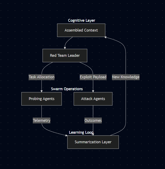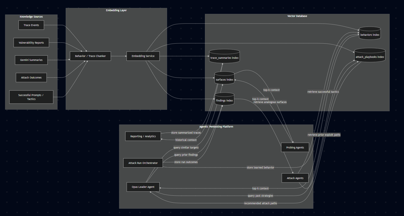 - Implemented explicit reinforcement learning over the vector database already, so the system learns from its own attack outcomes