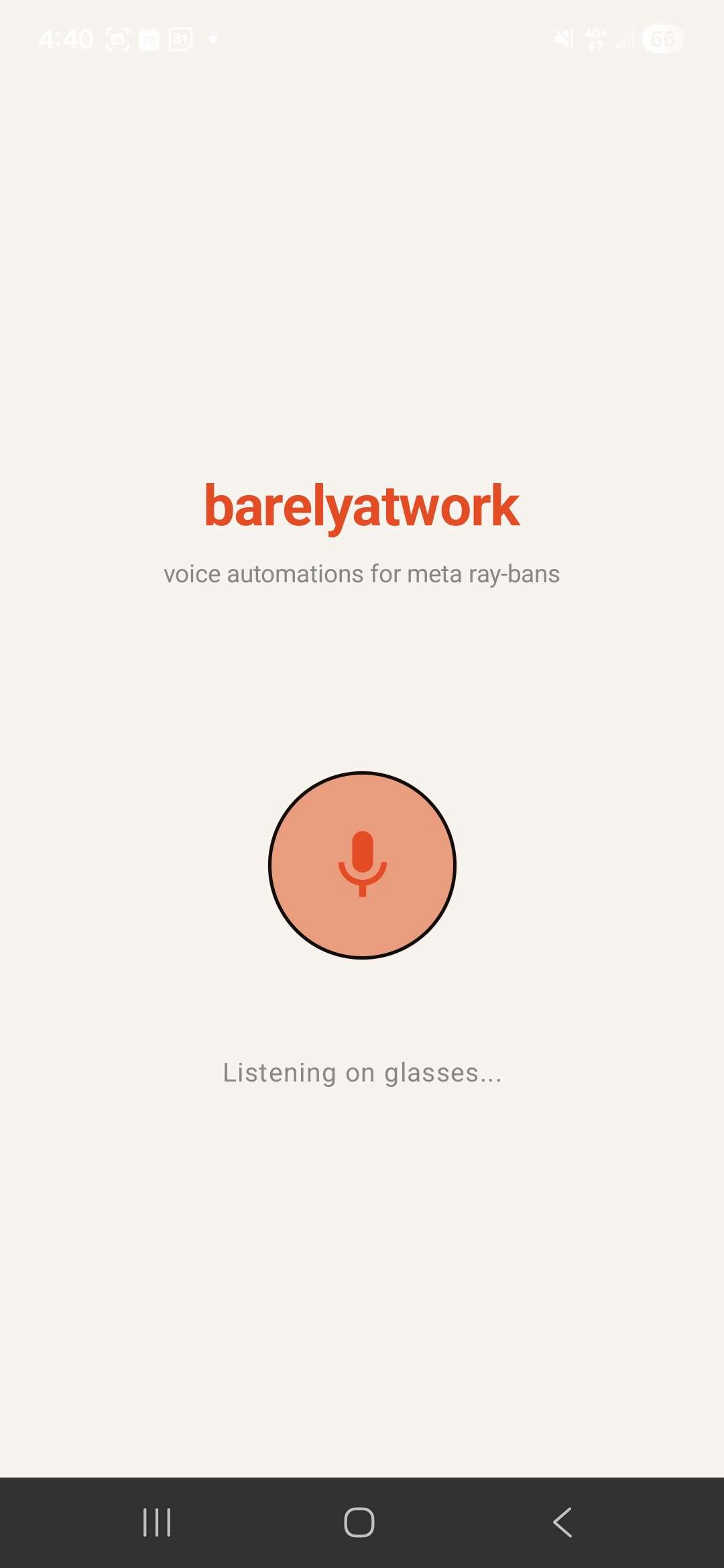 BarelyAtWork lets you create and run multi-step workflows across real apps entirely without a screen. After a quick one-time setup to connect 3rd-party applications with a simple OAuth flow, everything else happens through smart glasses. You simply speak, and our agent, Chad, turns natural language into automated multi-step workflows (like booking an Uber, sending messages, or updating calendars) and executes them in real time. By eliminating the need for apps, dashboards, or manual coordination, BarelyAtWork replaces traditional automation tools with a seamless, always-available interface powered purely by your voice.