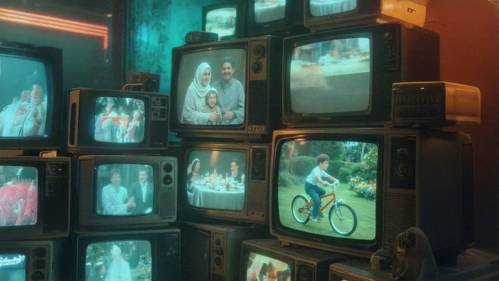 • I solved the TV shot by generating the TV with a green screen, tracking it in After Effects and inserting the AI-generated content inside the TV separately.