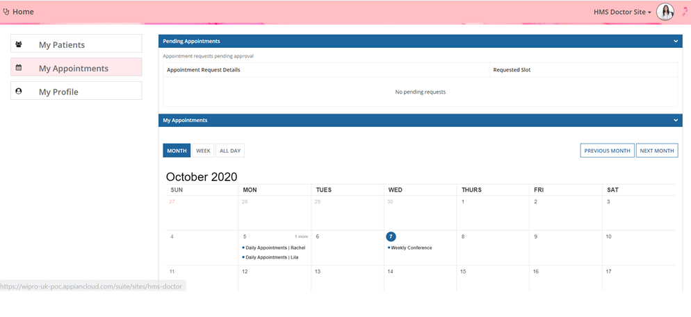 Doctor's appointments screen