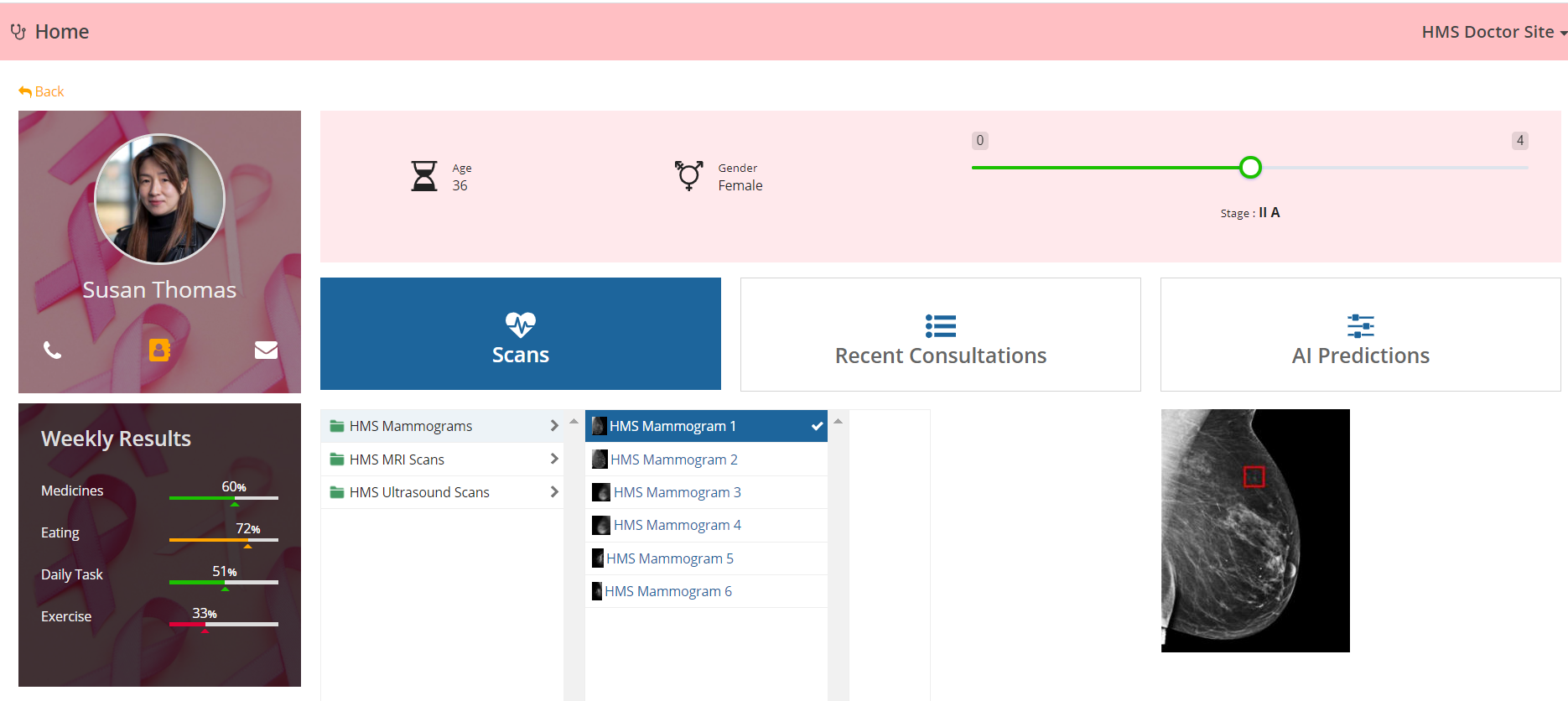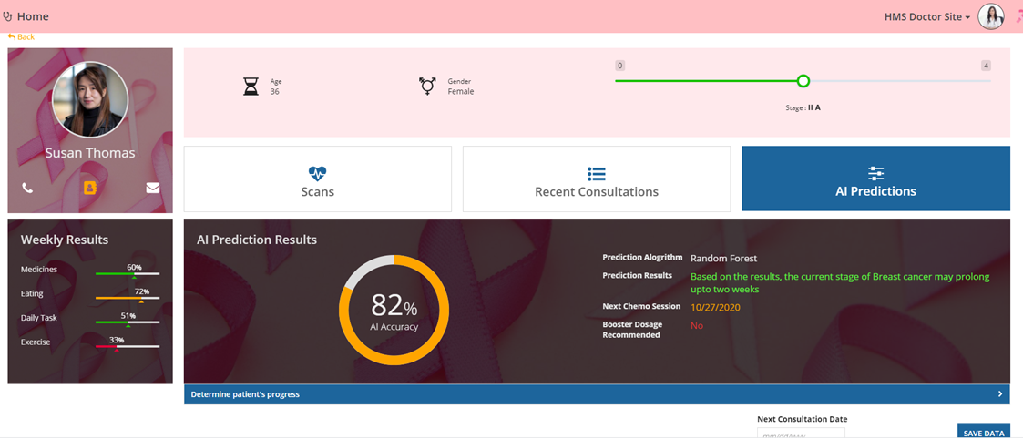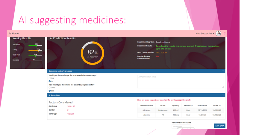 - Doctors can prescribe medicines and chemo treatment sessions based on ML suggestions