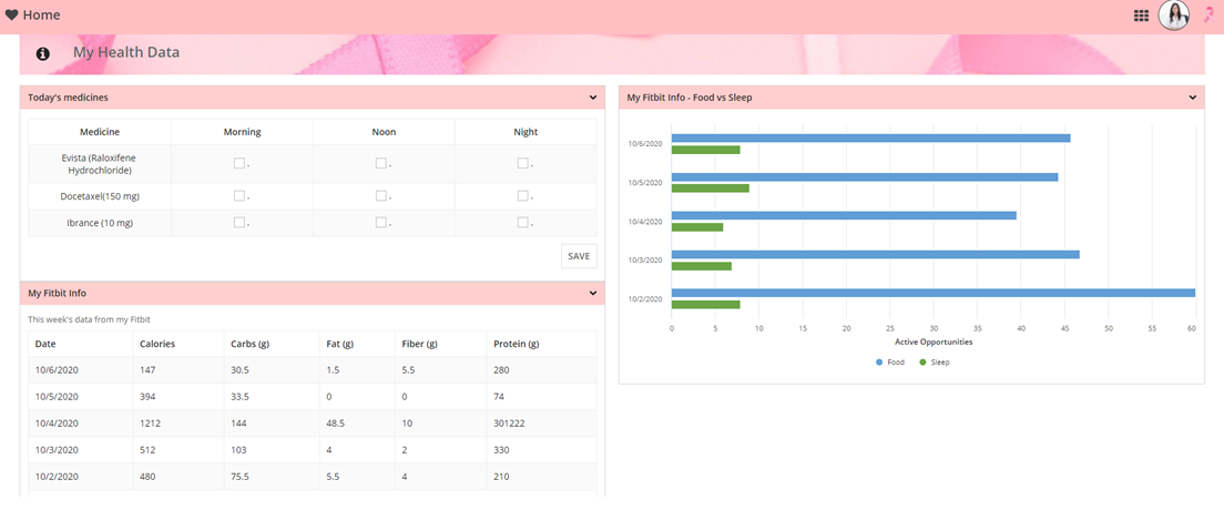 Patient's site - My data screen - FITBIT info