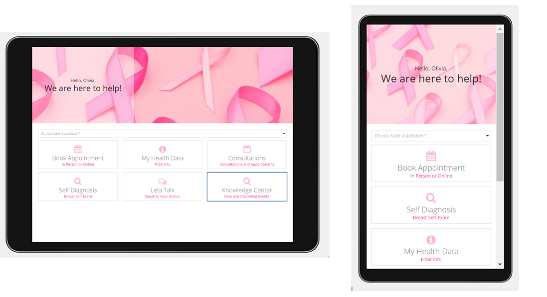 Patient landing page - mobile / tablet app