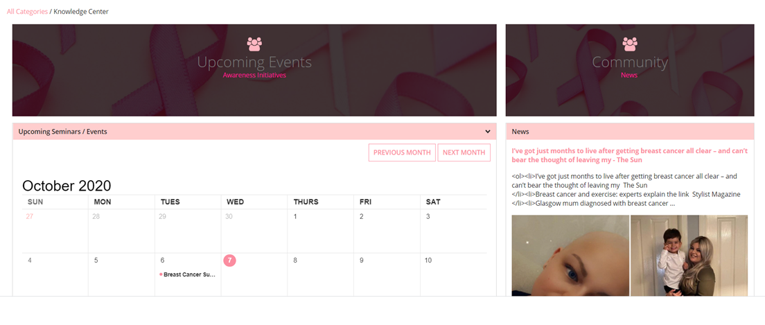 Patient site - knowledge center section - community and upcoming events