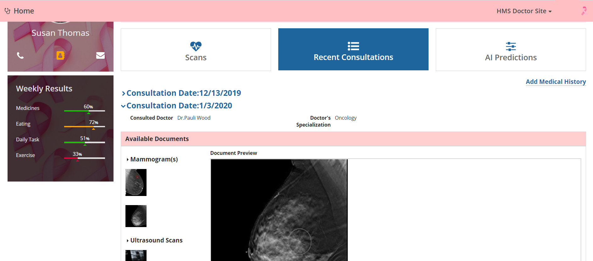 -This app lets the doctors manage the patient's medical history, irrespective of the hospital - maintaining scans and comments in one location -This app lets the doctors prescribe medicines in a more informed way with machine learning suggestions. -This app enables seamless, non-intrusive communication between patients and their doctors, -This app enables complete monitoring of patient by the doctor throughout the treatment cycle