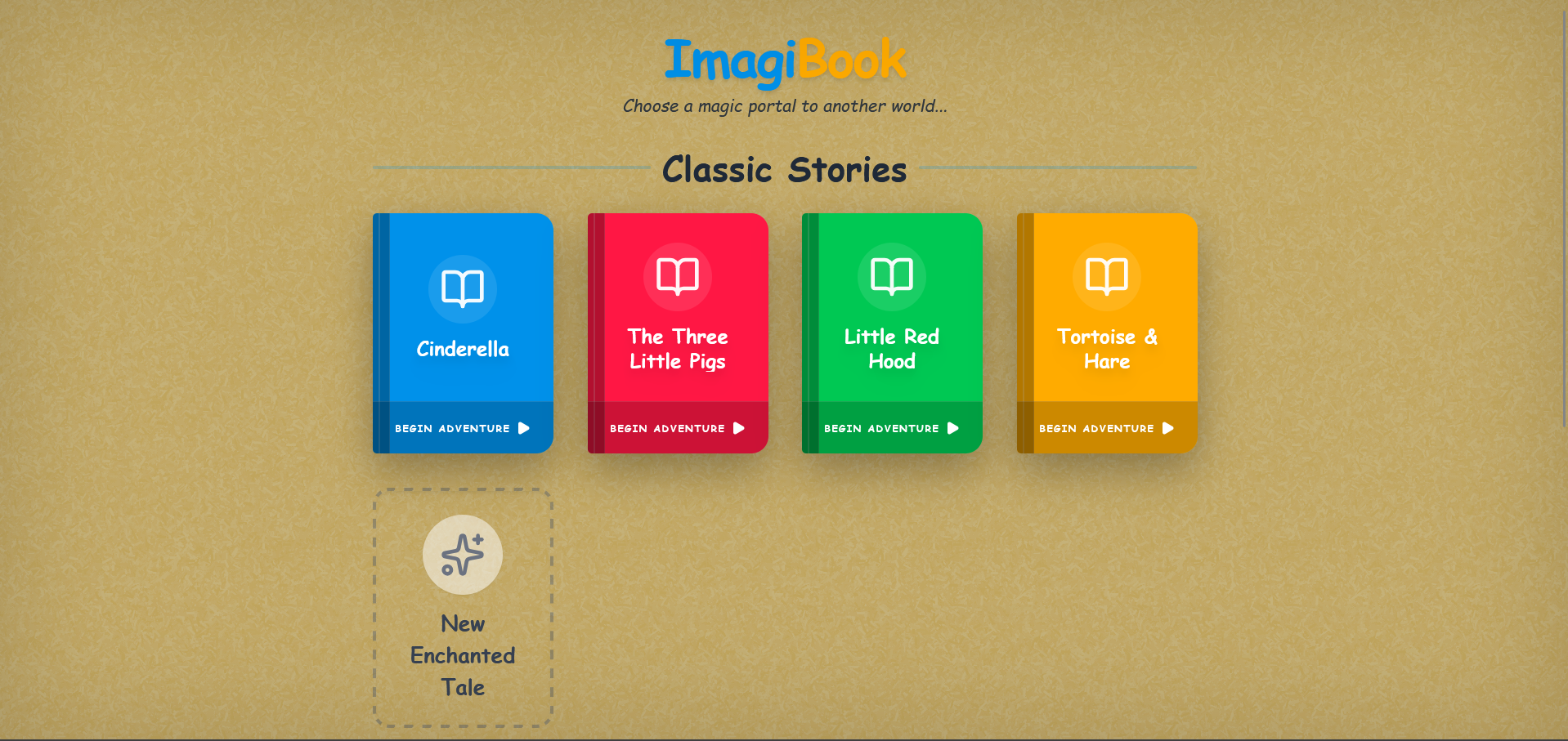 Imagibook combines two types of stories: classic kids stories for kids 6-7 (and below) which are enhanced by teaching, voice and image generation functions , and longform stories that act as mini novels for kids 8-12. These combine character customization, awesome cutscenes and the age-old "choose you adventure" format to create a more engaging experience for more mature readers. Both story formats include pre-loaded stories and the ability to generate stories the user wants either fro pre-loaded prompts or their own custom prompt.