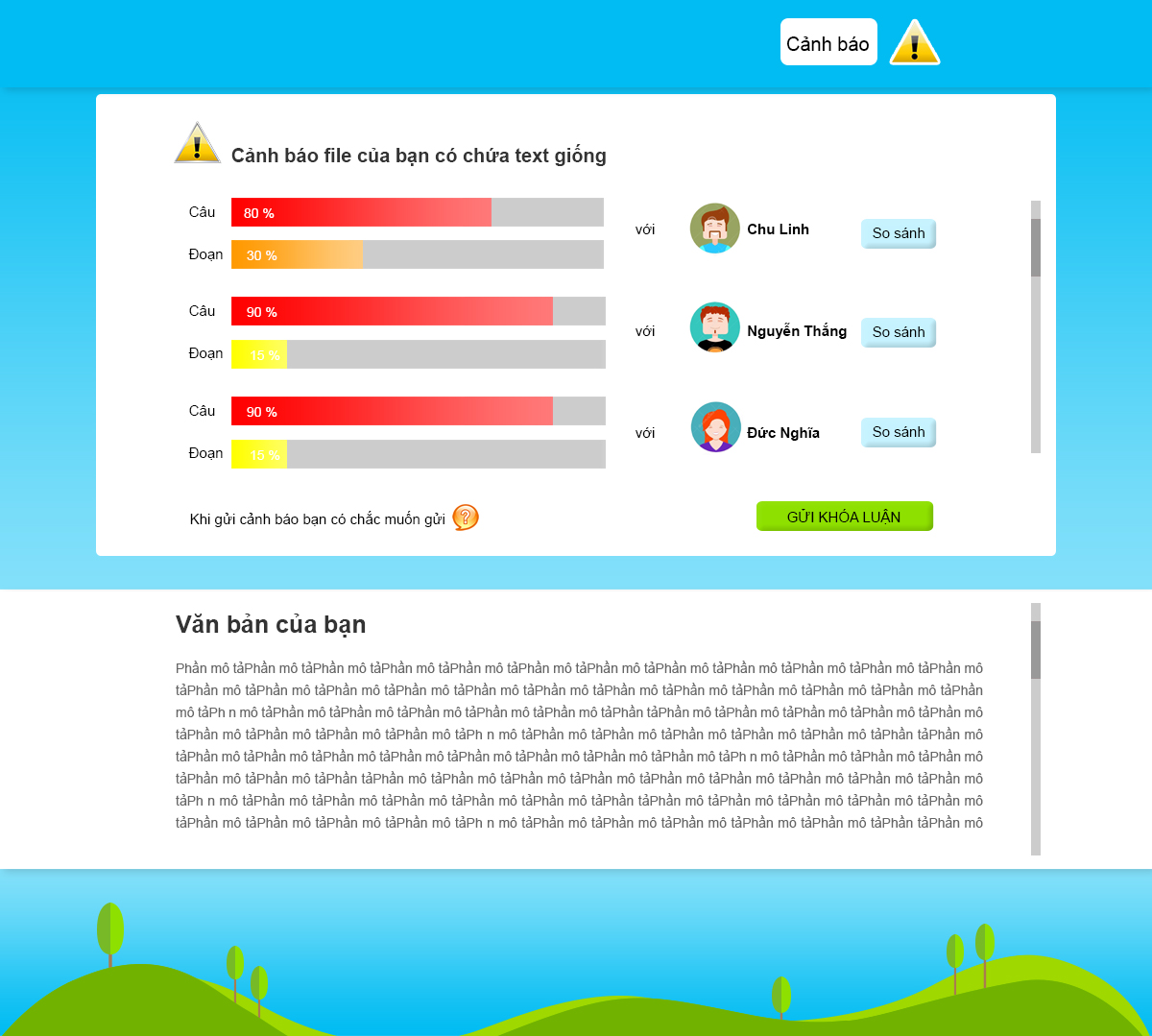 In Vietnam, a lot of students find it free to use copycat thesis. They could buy thesis very easily at shops which place near the gates of every university. We really want to reduce that bad behavior.