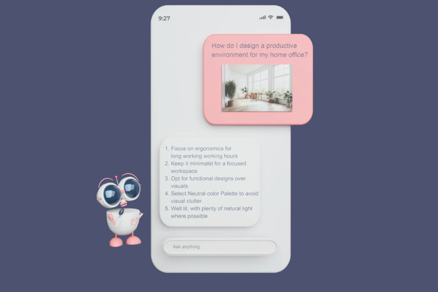 Immy is an AI assistant that delivers design suggestions tailored to users' personalities and recommends actual products that align with these design ideas.